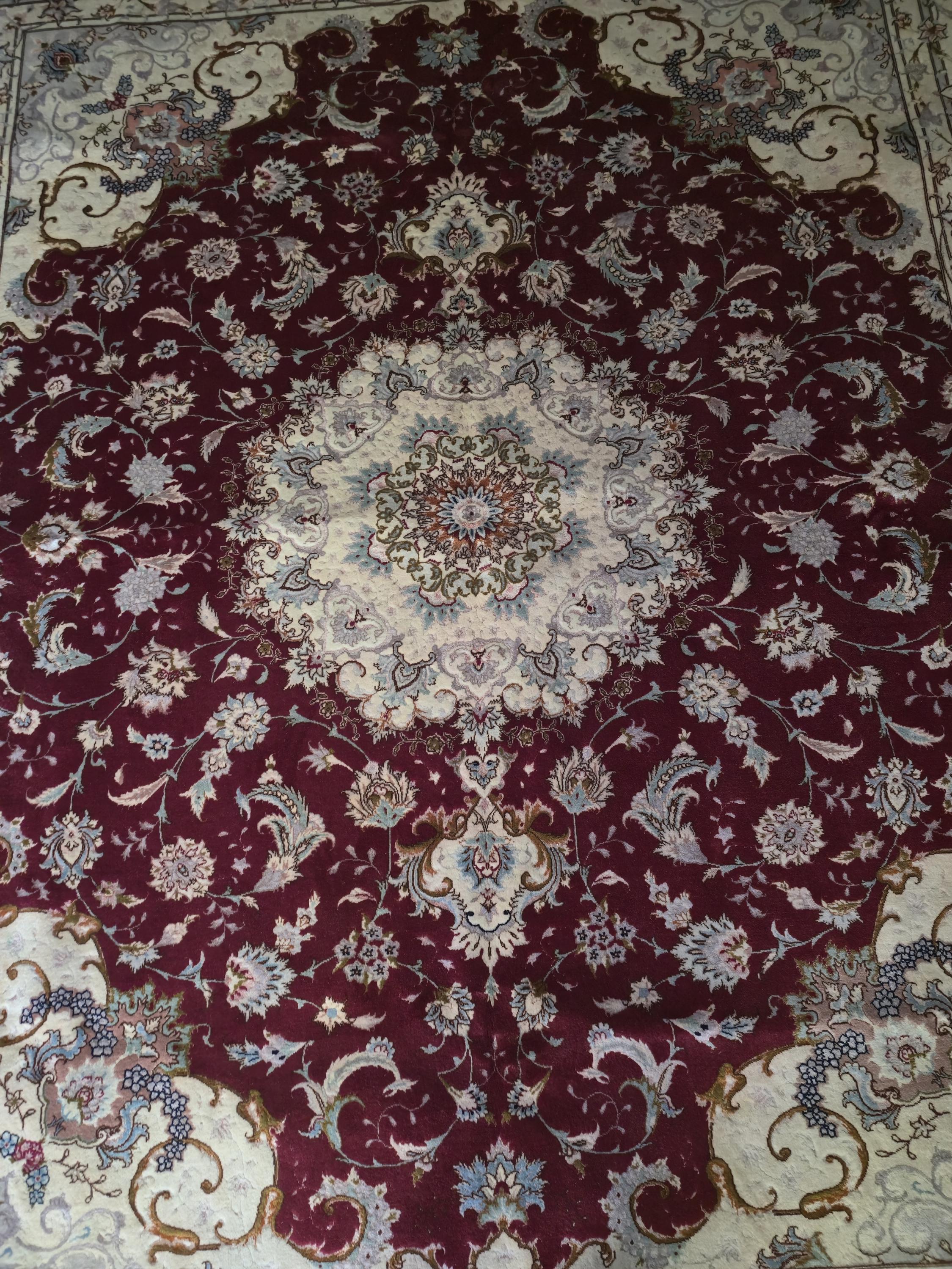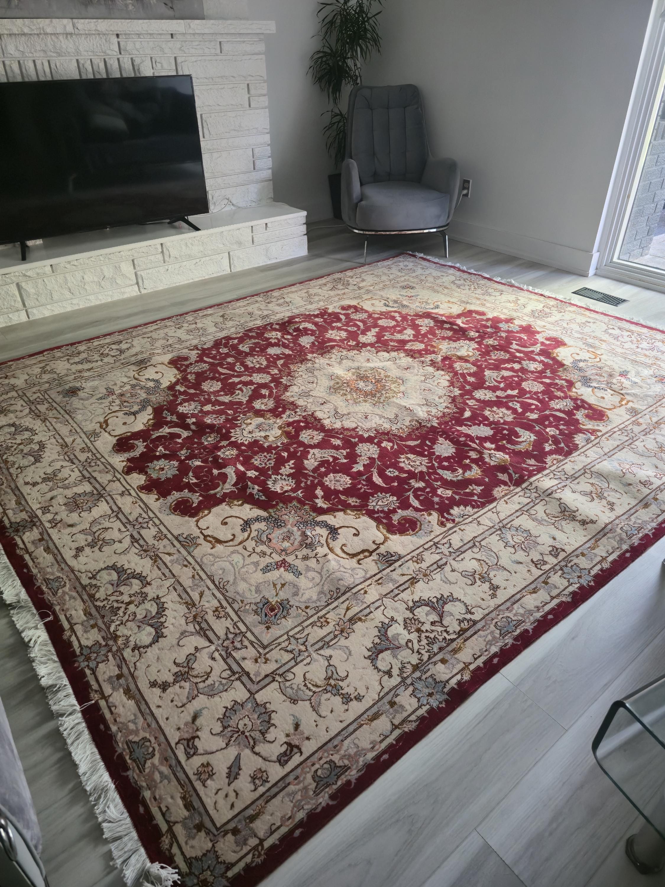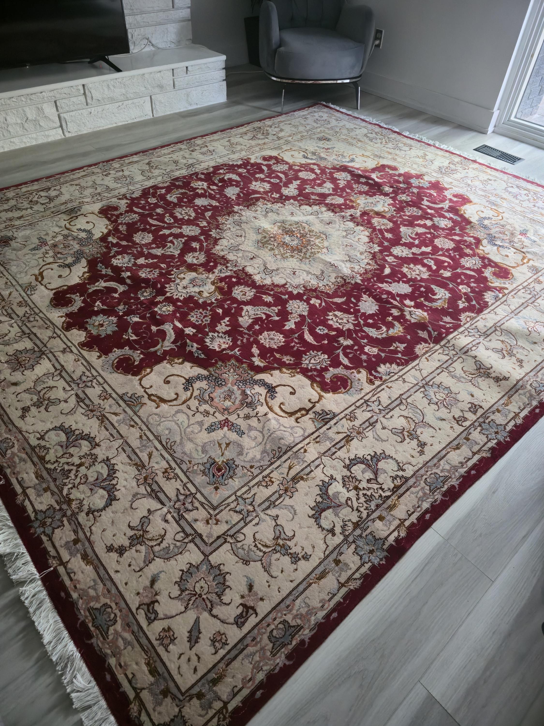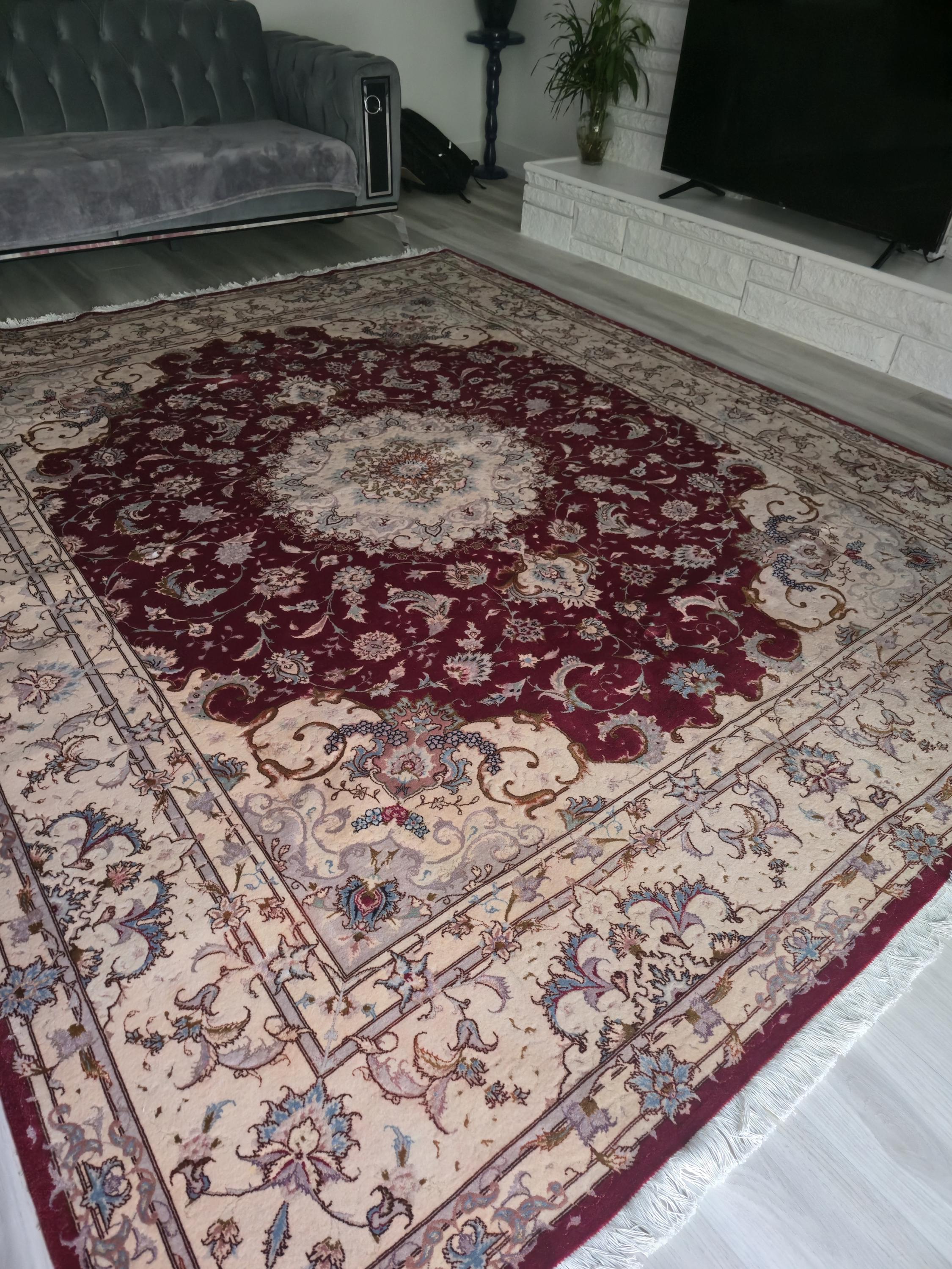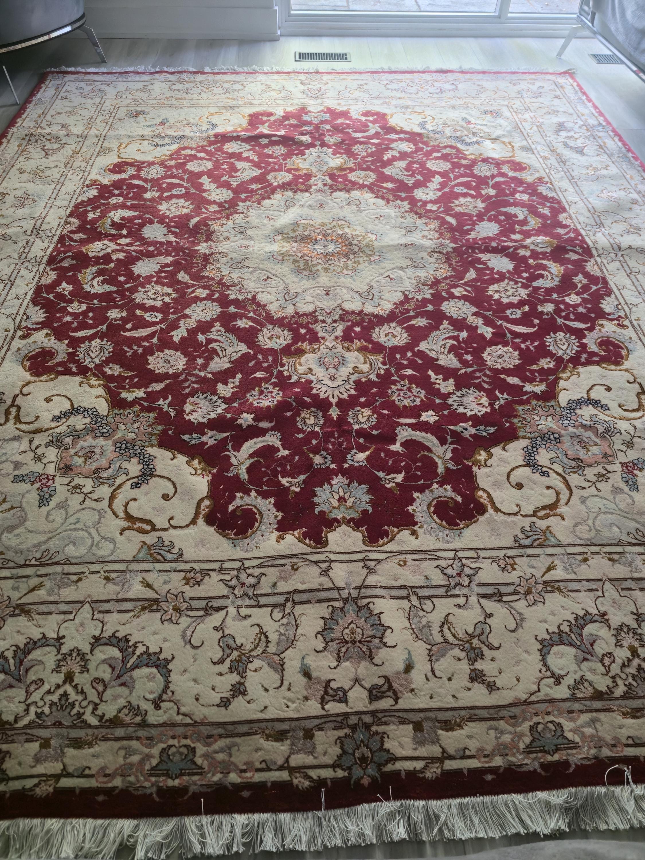 This stunning red Persian Nain rug features a detailed medallion design, double knotted and extremely tightly knotted for exceptional durability. Handcrafted from premium wool and silk, it's stain-resistant, shedding-free, and built to last. The dense 1 cm pile is ideal for high-traffic areas like living rooms and dining rooms. A timeless wonderful piece that adds warmth, color, and elegance to any space. The current price is a fraction of its real value—an incredible investment in lasting beauty.