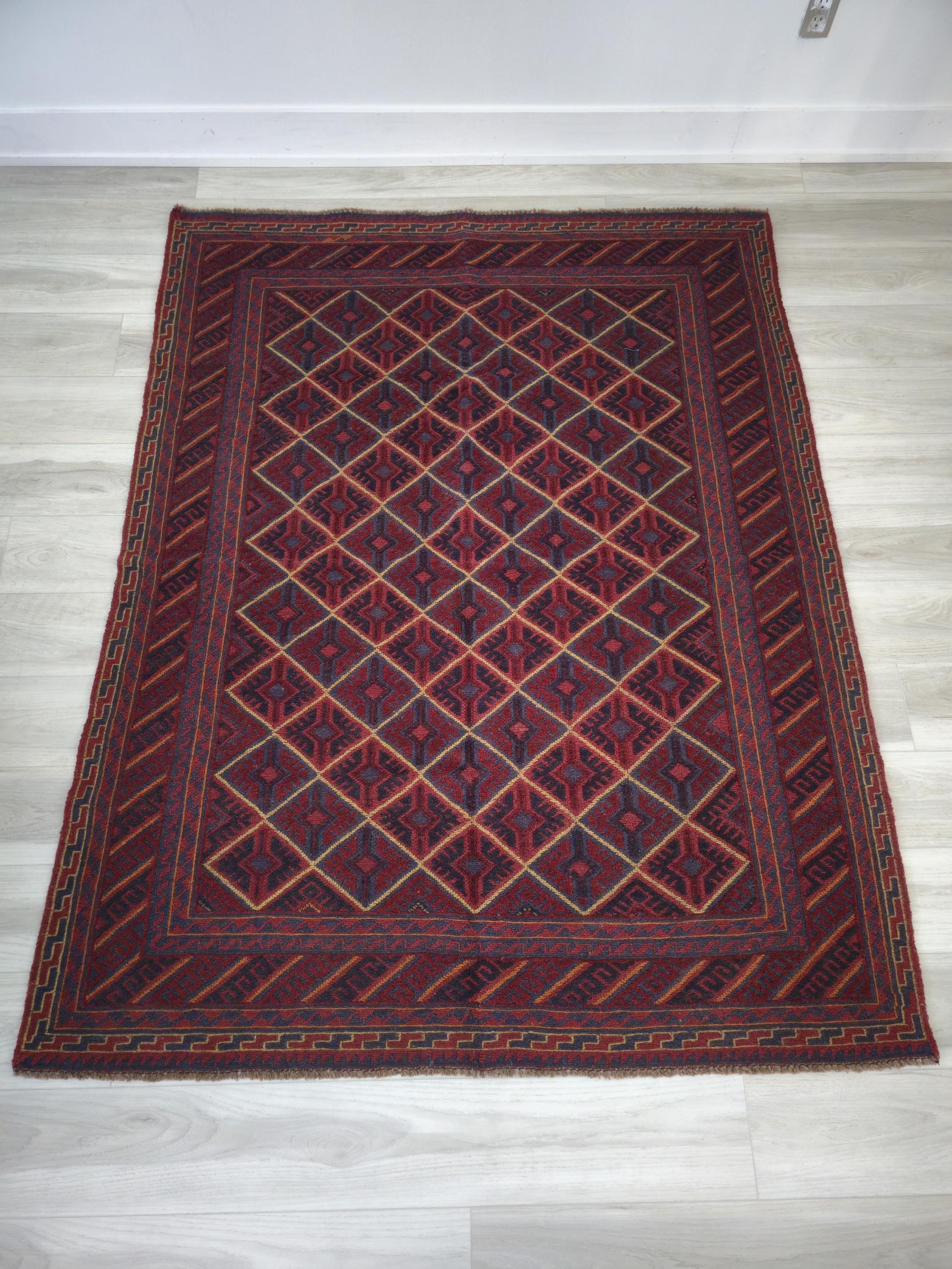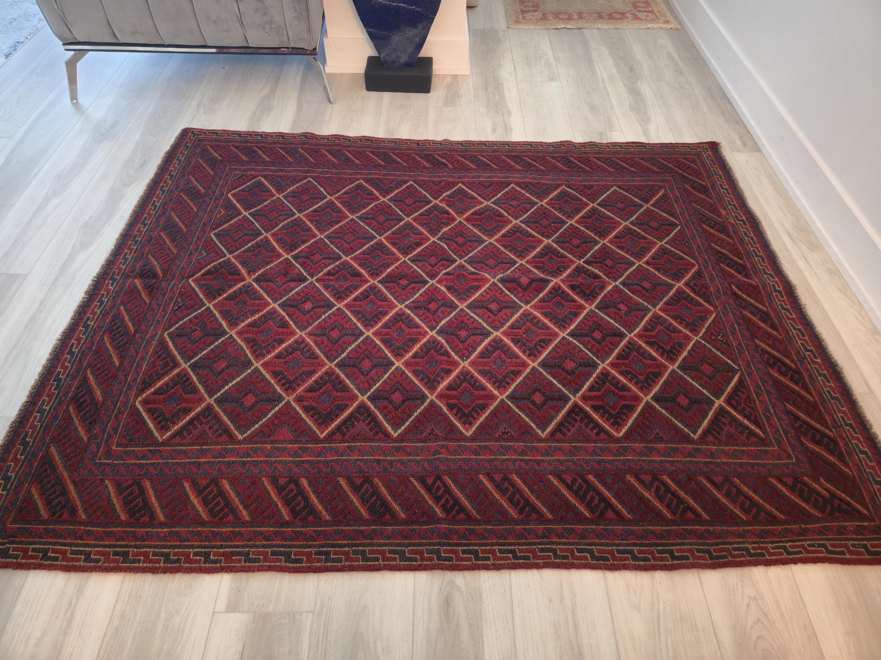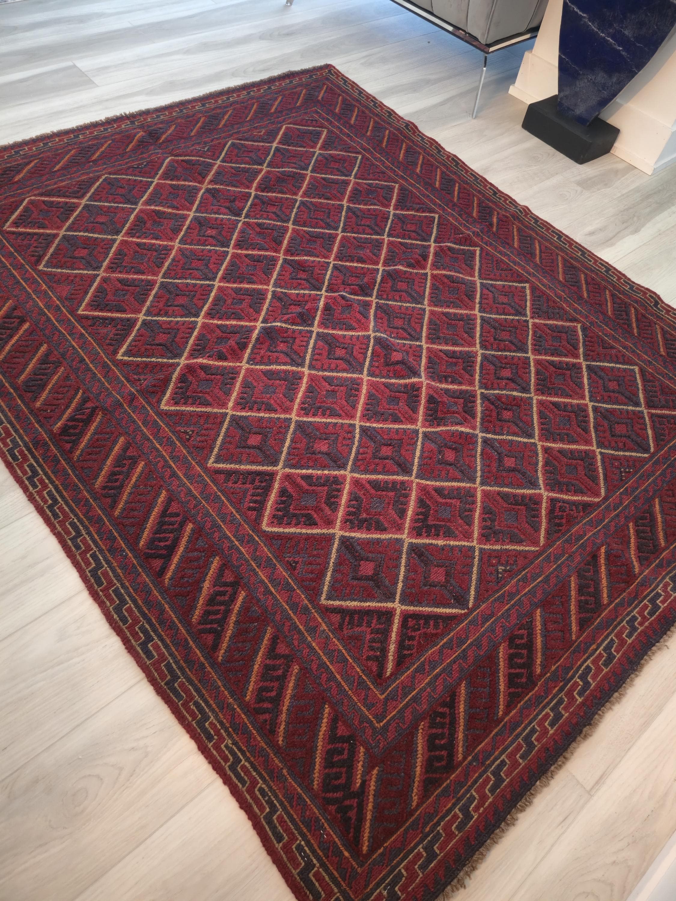 These wonderful tribal rugs are woven by the Mushwani people in Herat provinces of Afghanistan. They feature a unique mixed weave structure including knotted pile. This is considered one of the most difficult handmade rug weaving, as they make the flat weave klim first and then make the pile on top of some patterns. The Mushwani are descendants of Turkmens and a tribe located south of Herat near Shindand. They are sometimes incorrectly identified as a Baluch tribe.