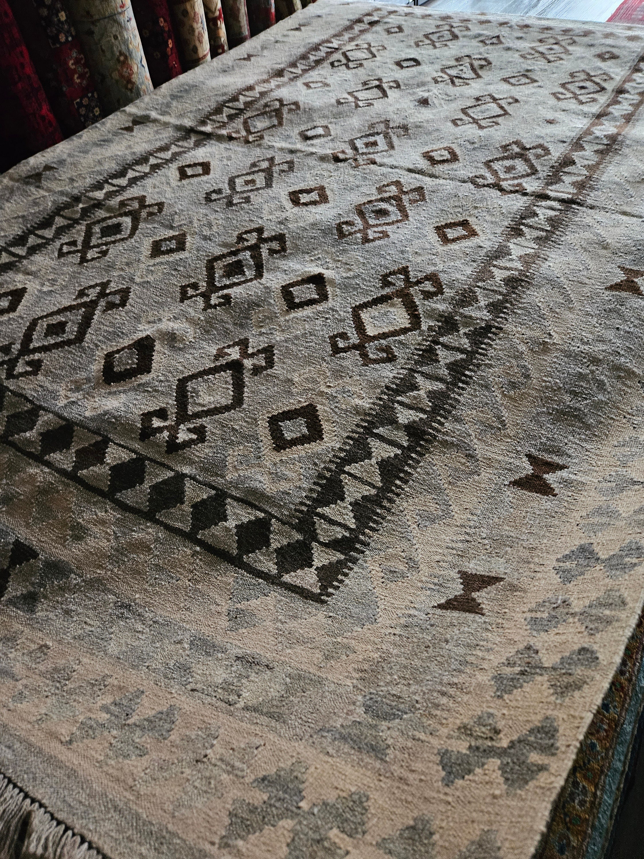 It's a beautiful brand new faded color made with 100% soft wool from Ghazni province north of Afghanistan which is high-quality with stunning Colors waiting for someone to appreciate her beauty. This rug is absolutely perfect in any setting, like a classic, modern home or office. This rug will last you for many years to come, under everyday usage and foot traffic.
