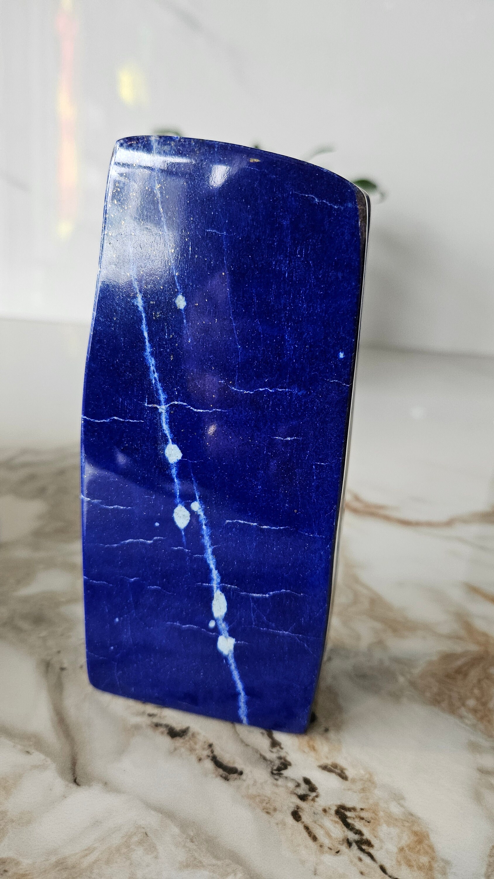 This is an A+++ Grade Lapis Lazuli from Afghanistan. All the pictures and videos were taken in natural sunlight to showcase its true color, and all the tiny details that make each of the stones unique.