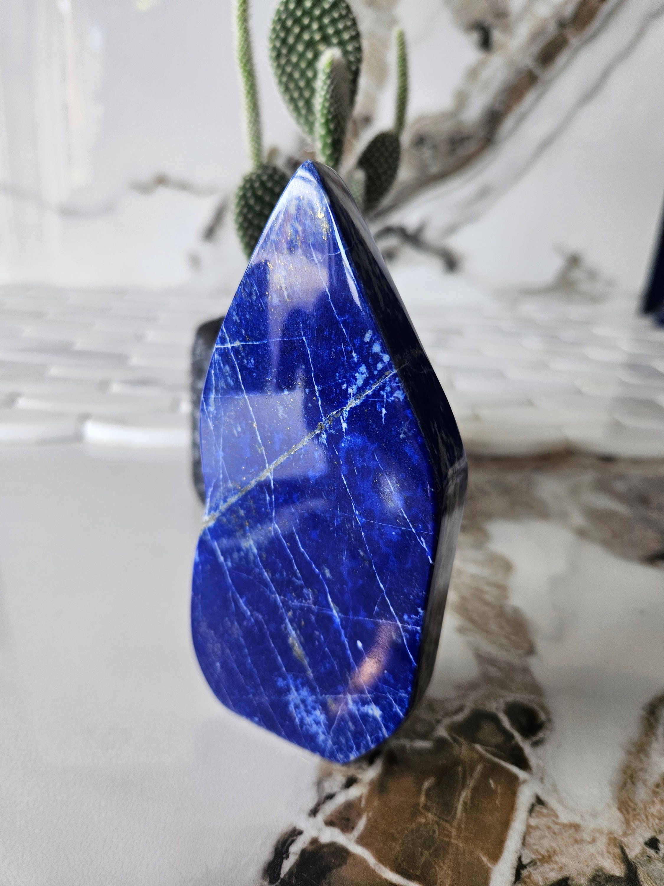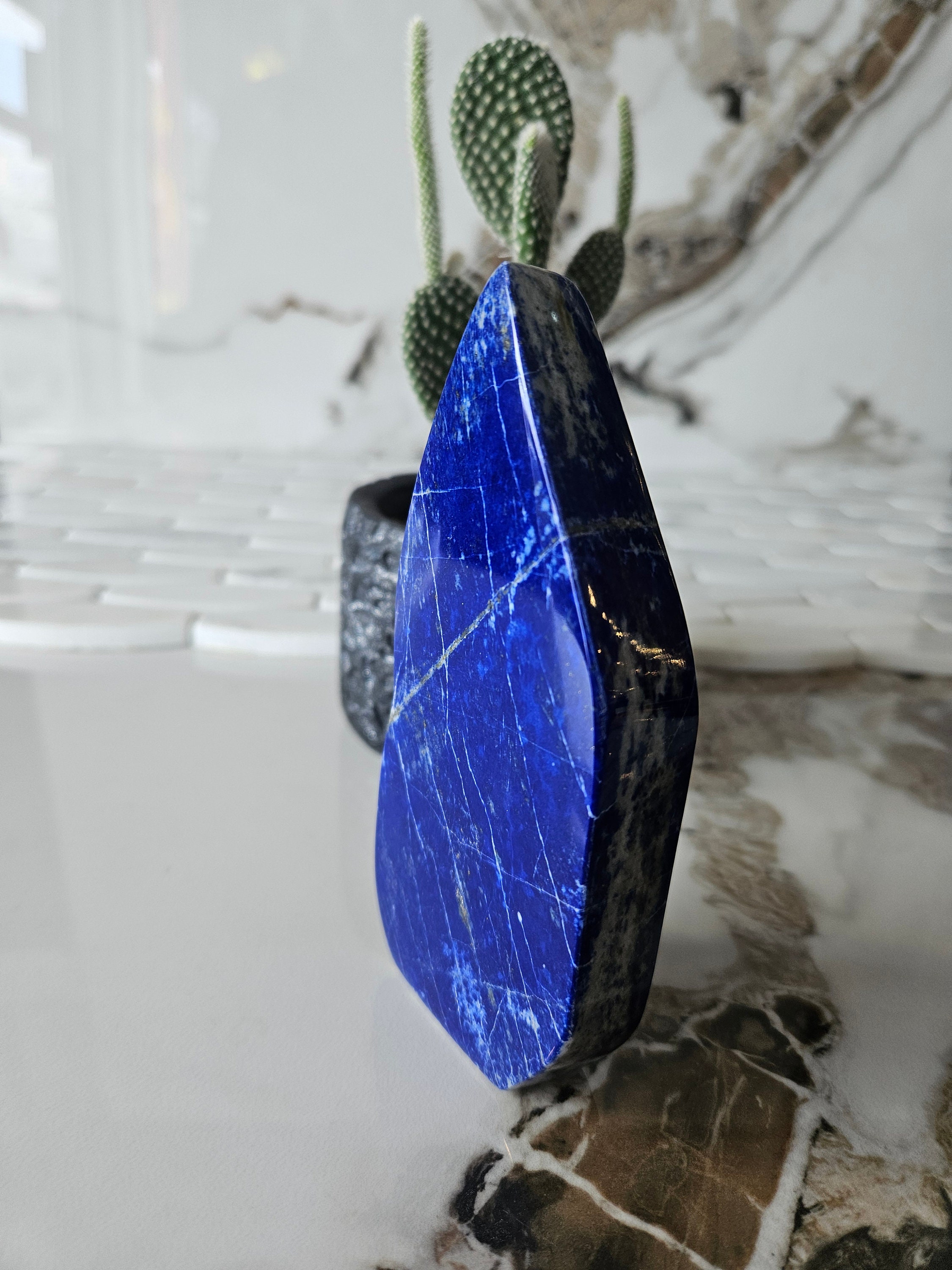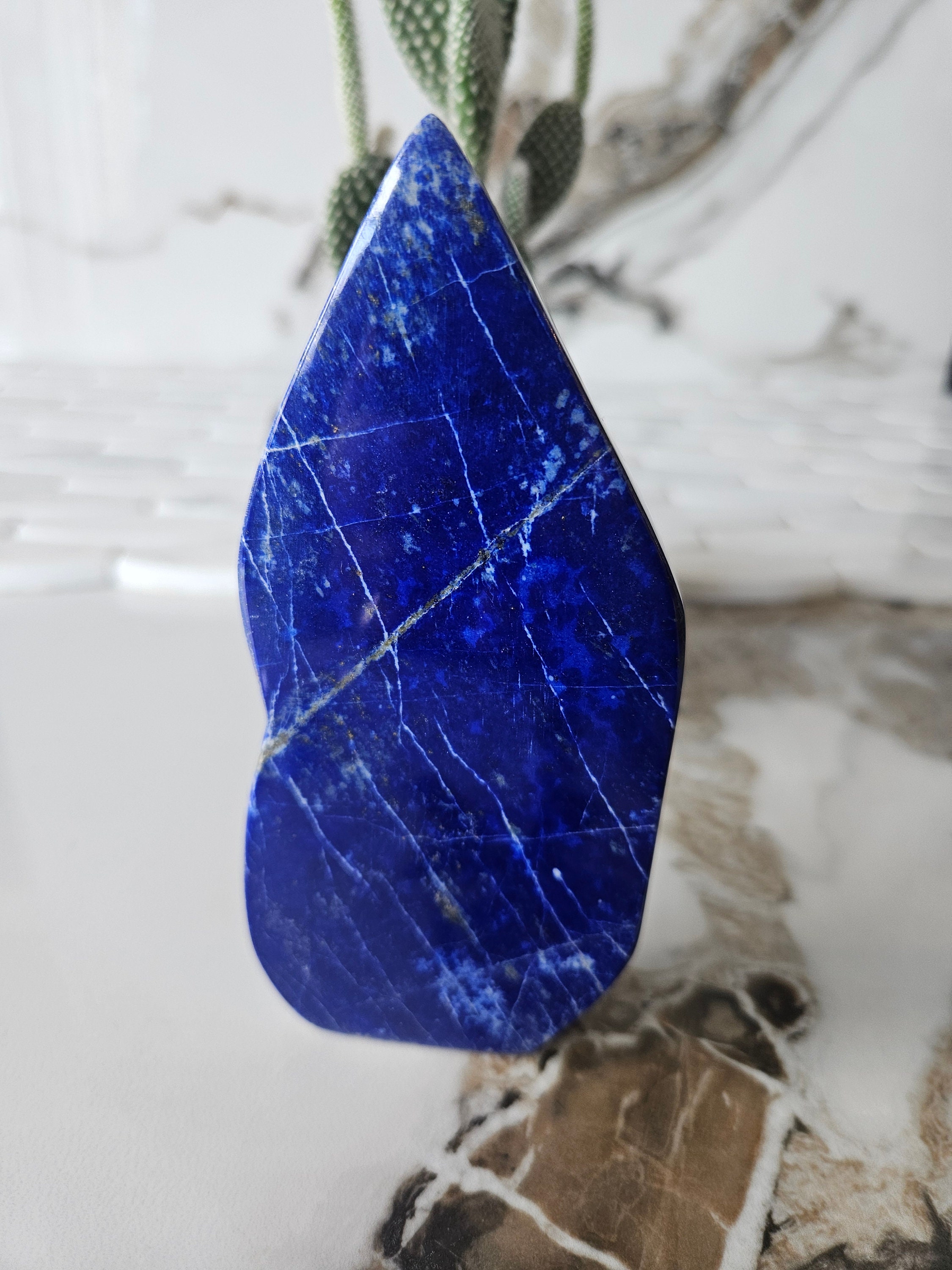 This is a unique A++ Grade Lapis Lazuli from Afghanistan. All the pictures and videos were taken in natural sunlight to showcase its true color, and all the tiny details that make each of the stones unique.
