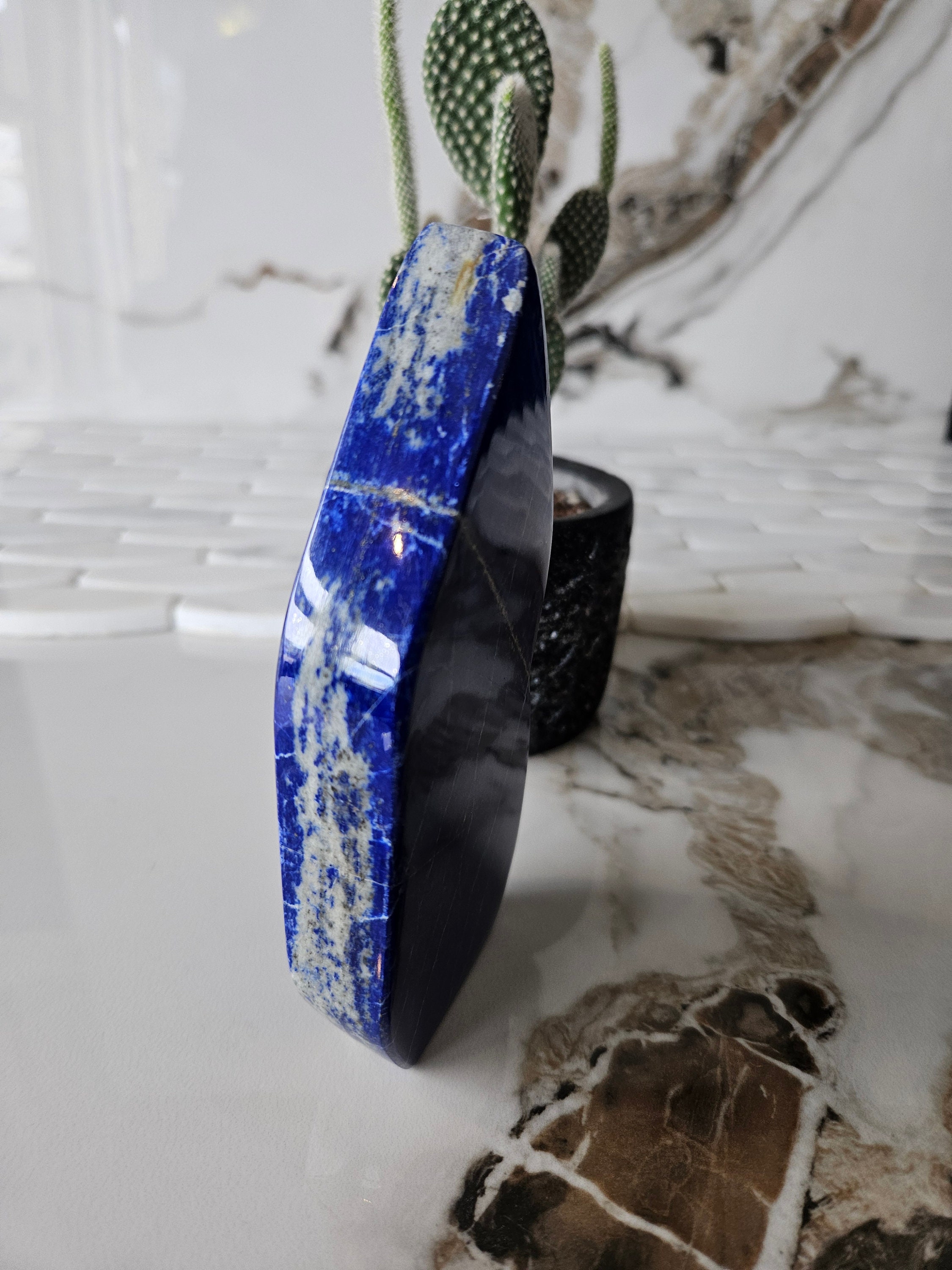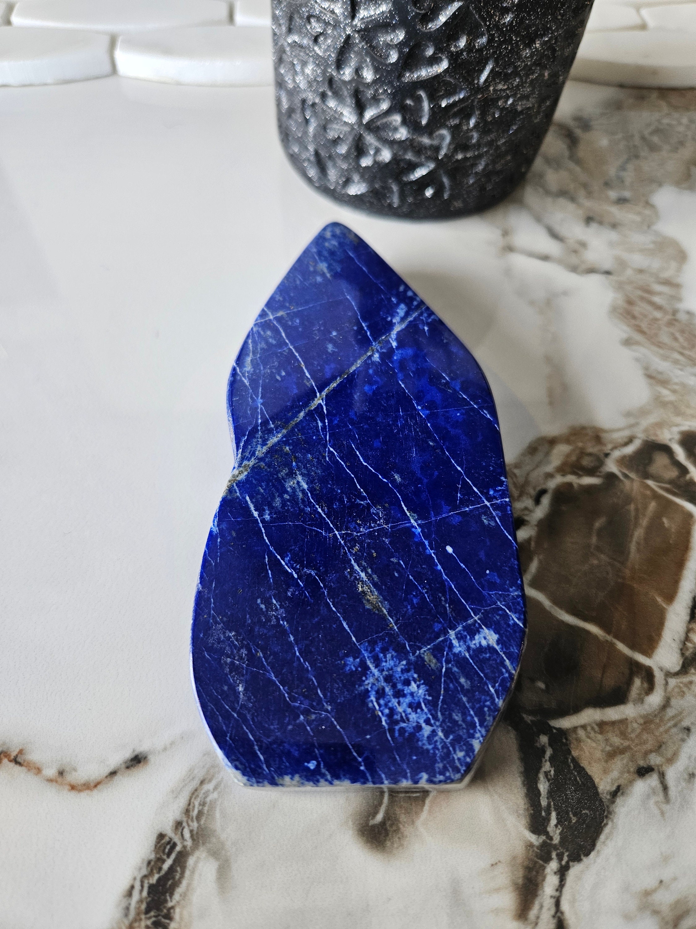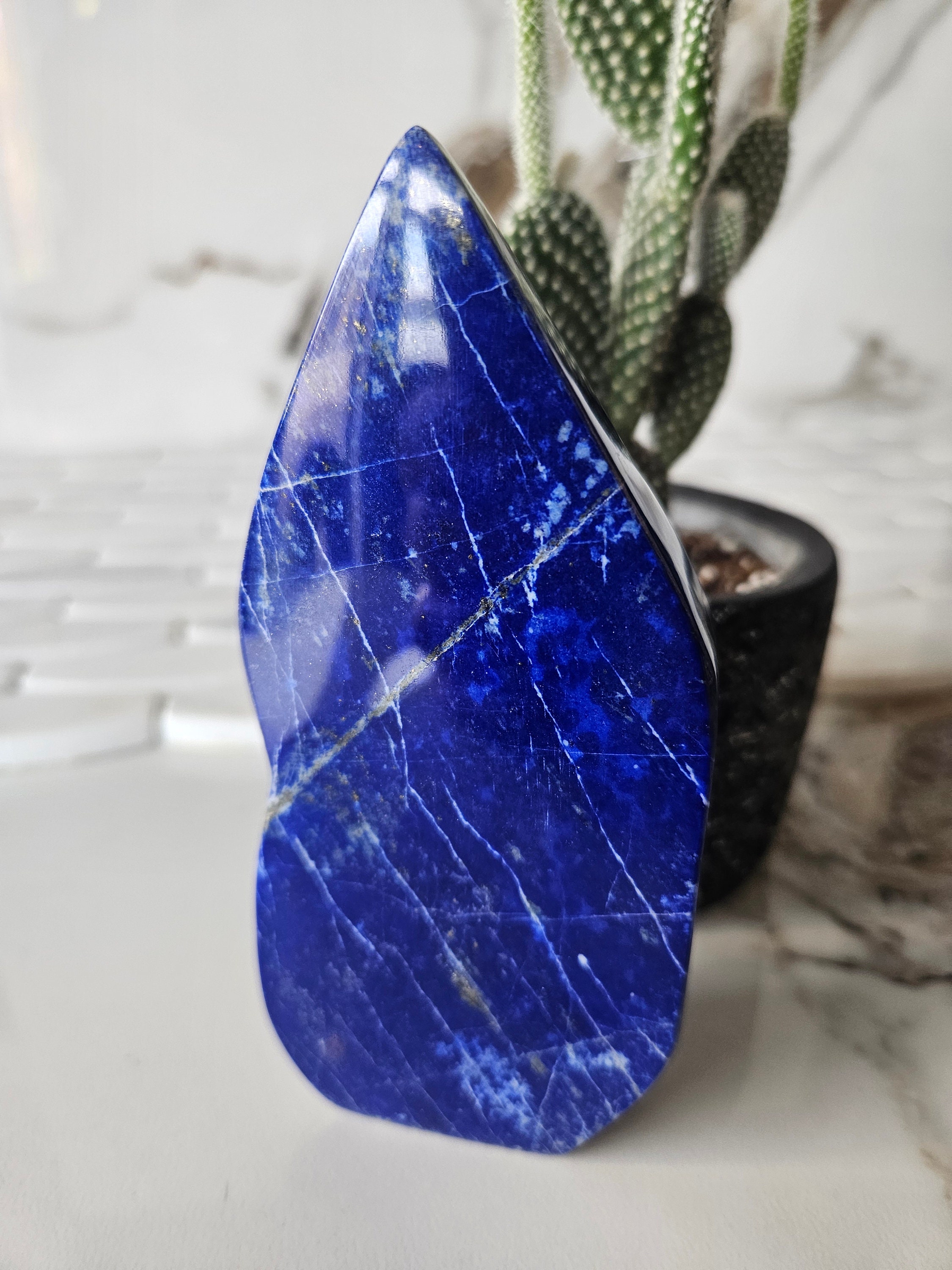 This is a unique A++ Grade Lapis Lazuli from Afghanistan. All the pictures and videos were taken in natural sunlight to showcase its true color, and all the tiny details that make each of the stones unique.