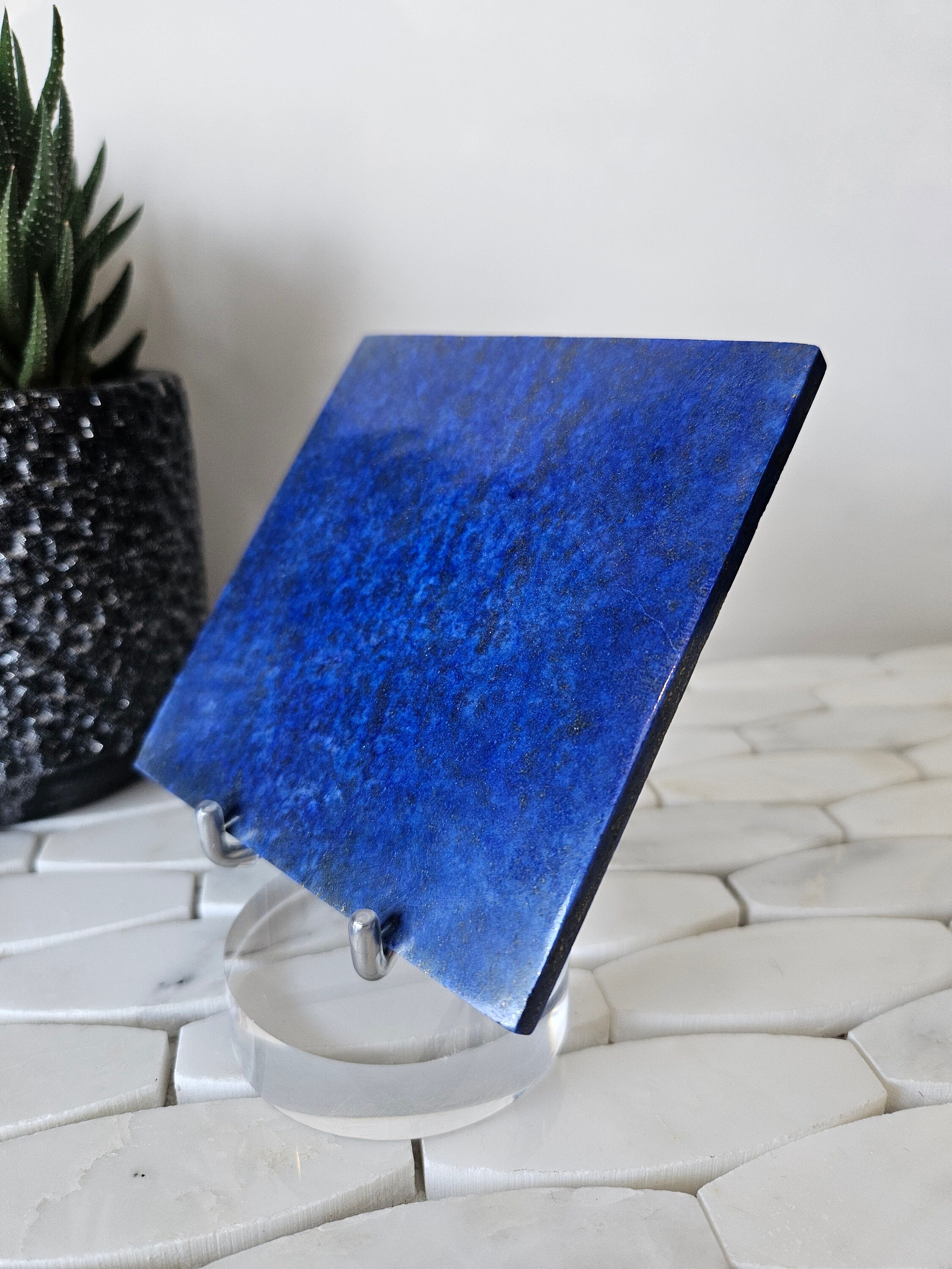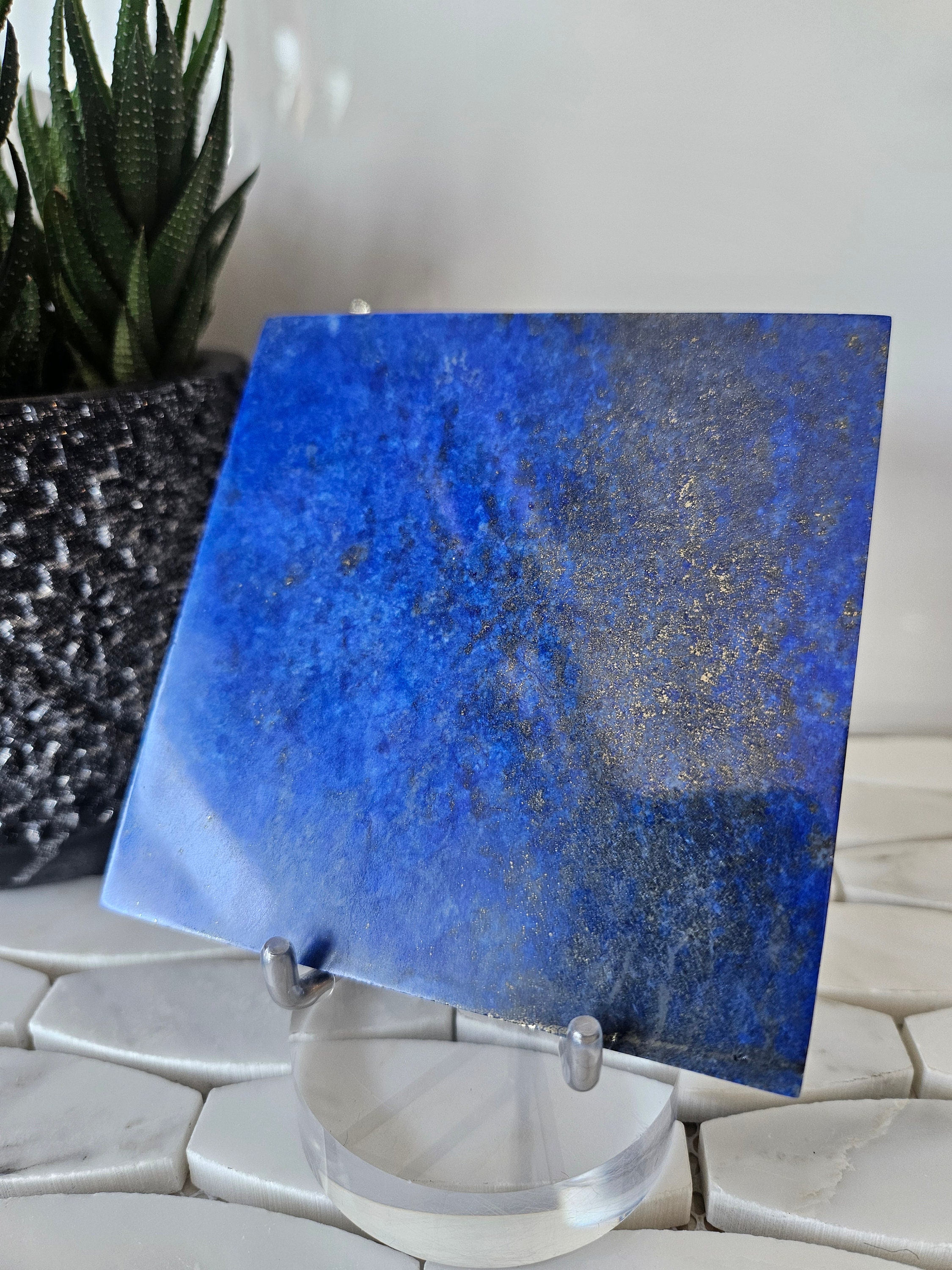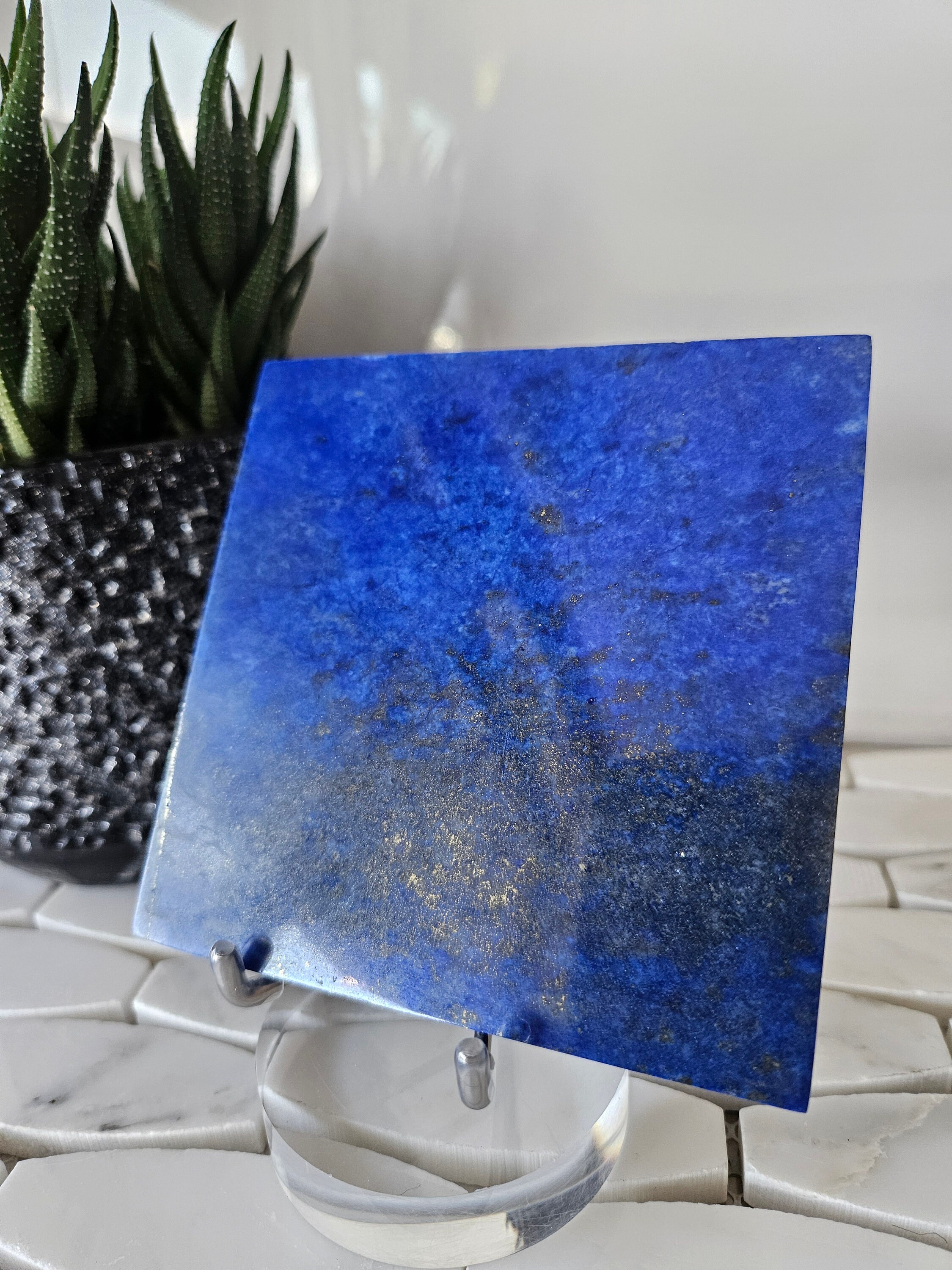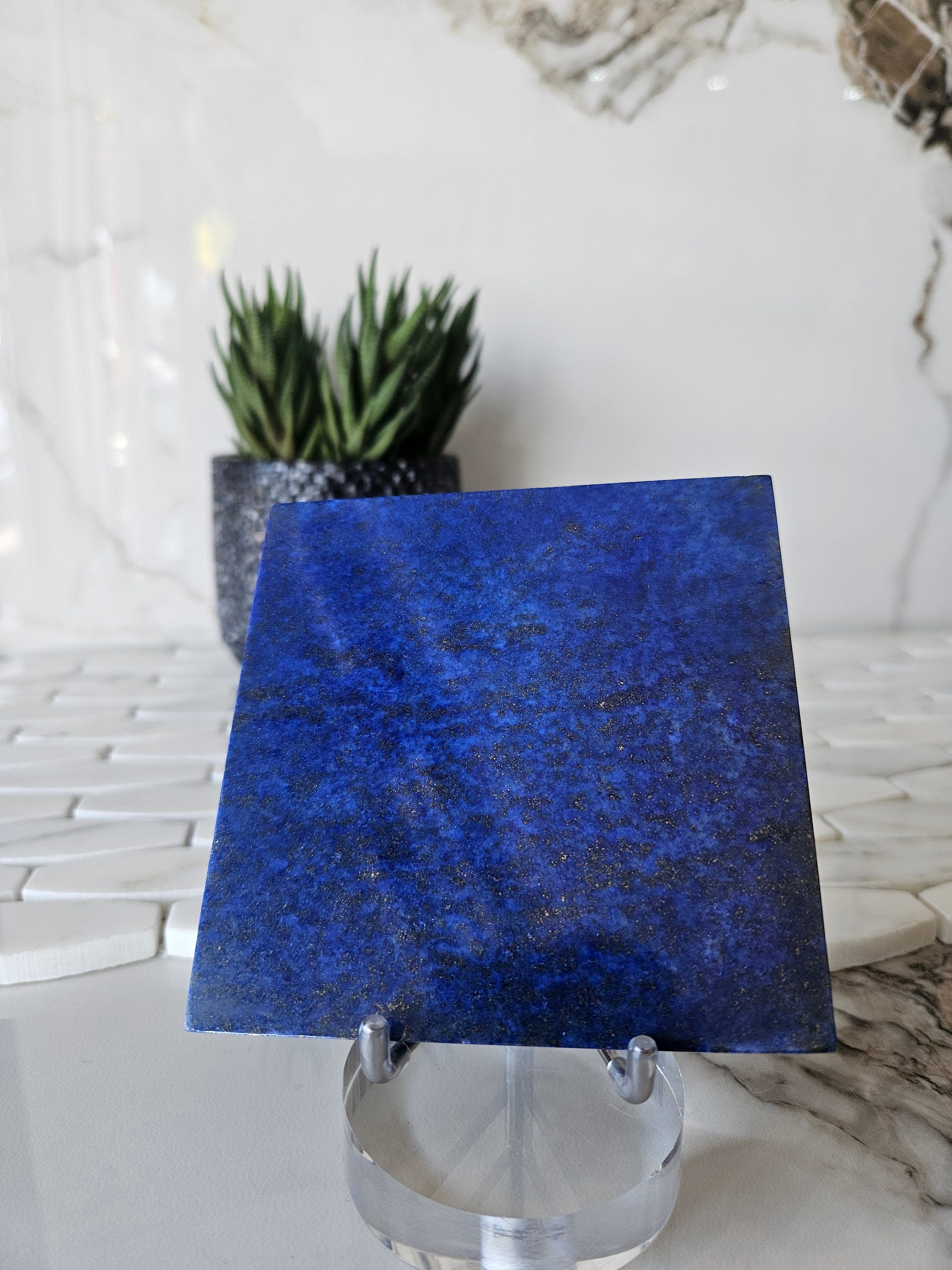 Unlike other Lapis Lazuli tiles, the ones we sell come from a whole stone for each individual pile, meaning the design of the tile is much more polished, cleaner, without a void of the royal blue theme, and it does not look like multiple small pieces of lapis were just put together. This is truly one of a kind, and is also much more durable than the mosaic ones.