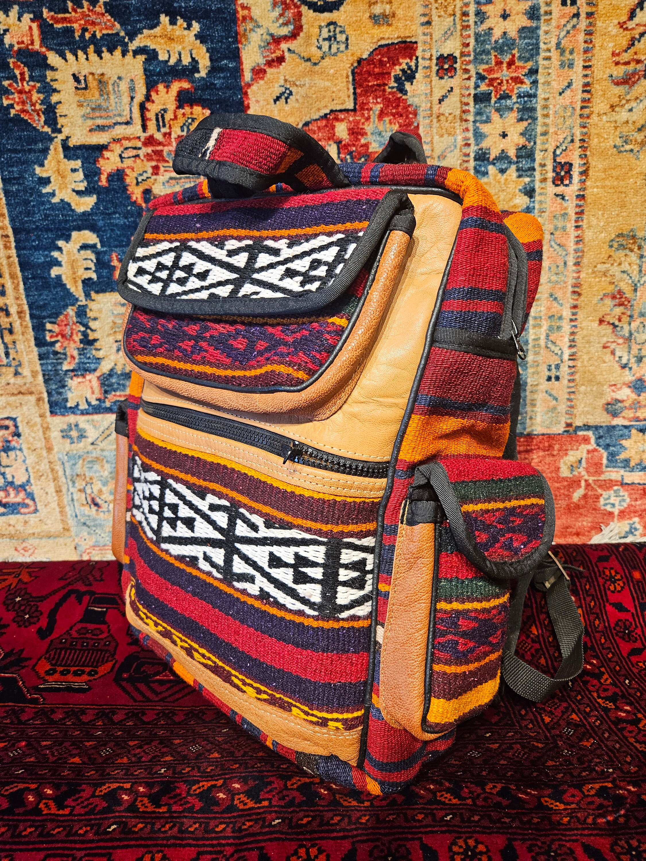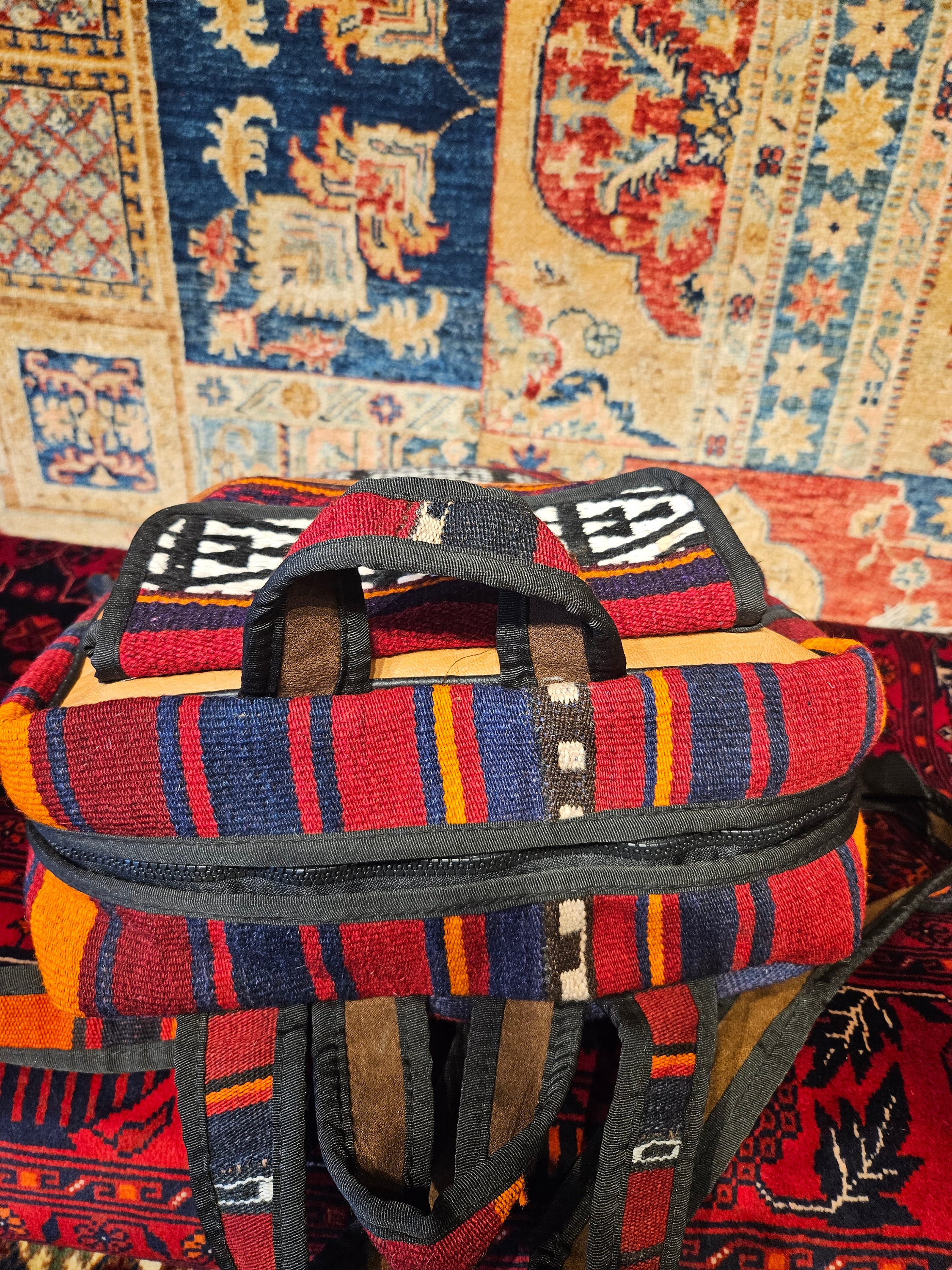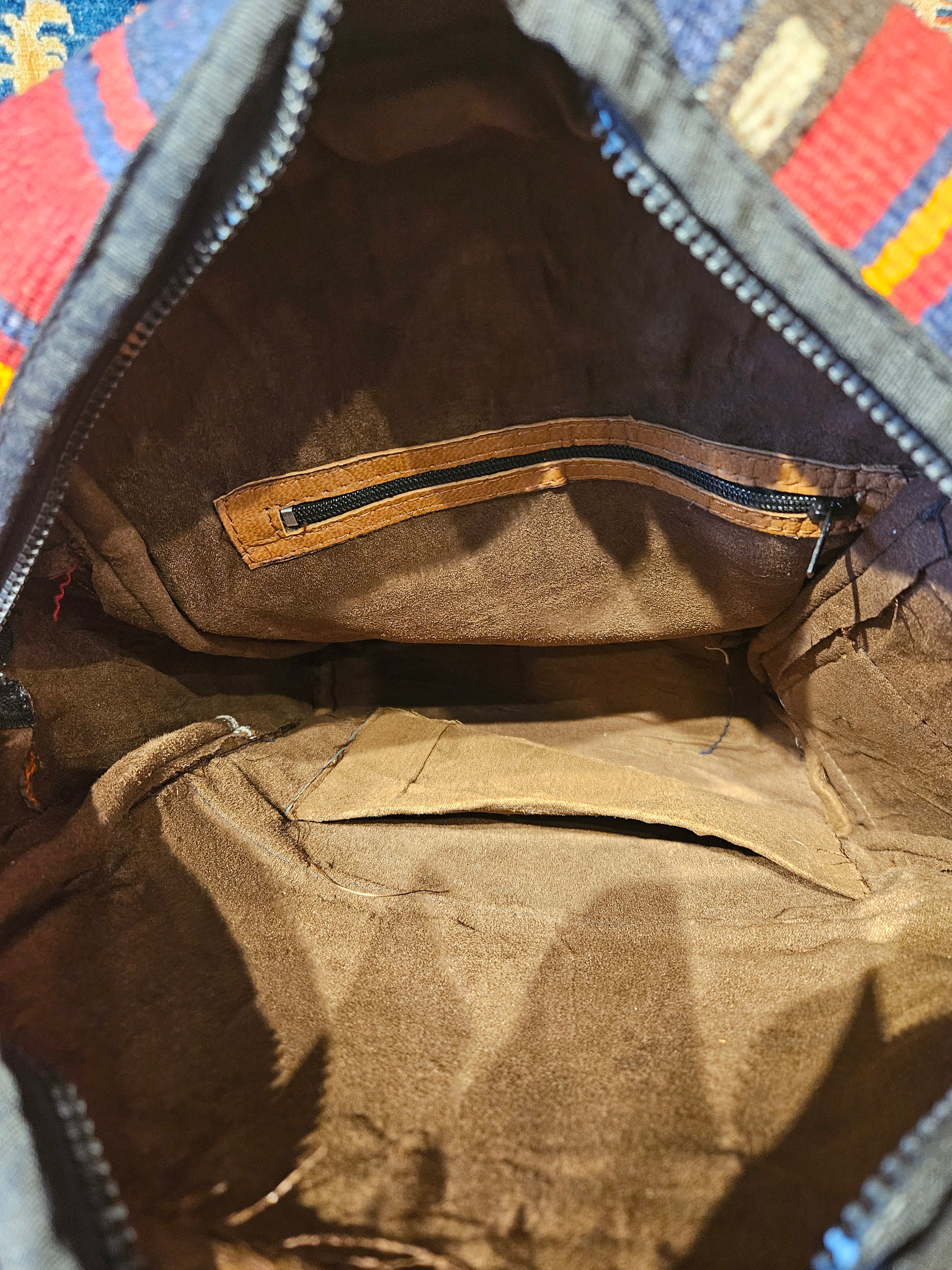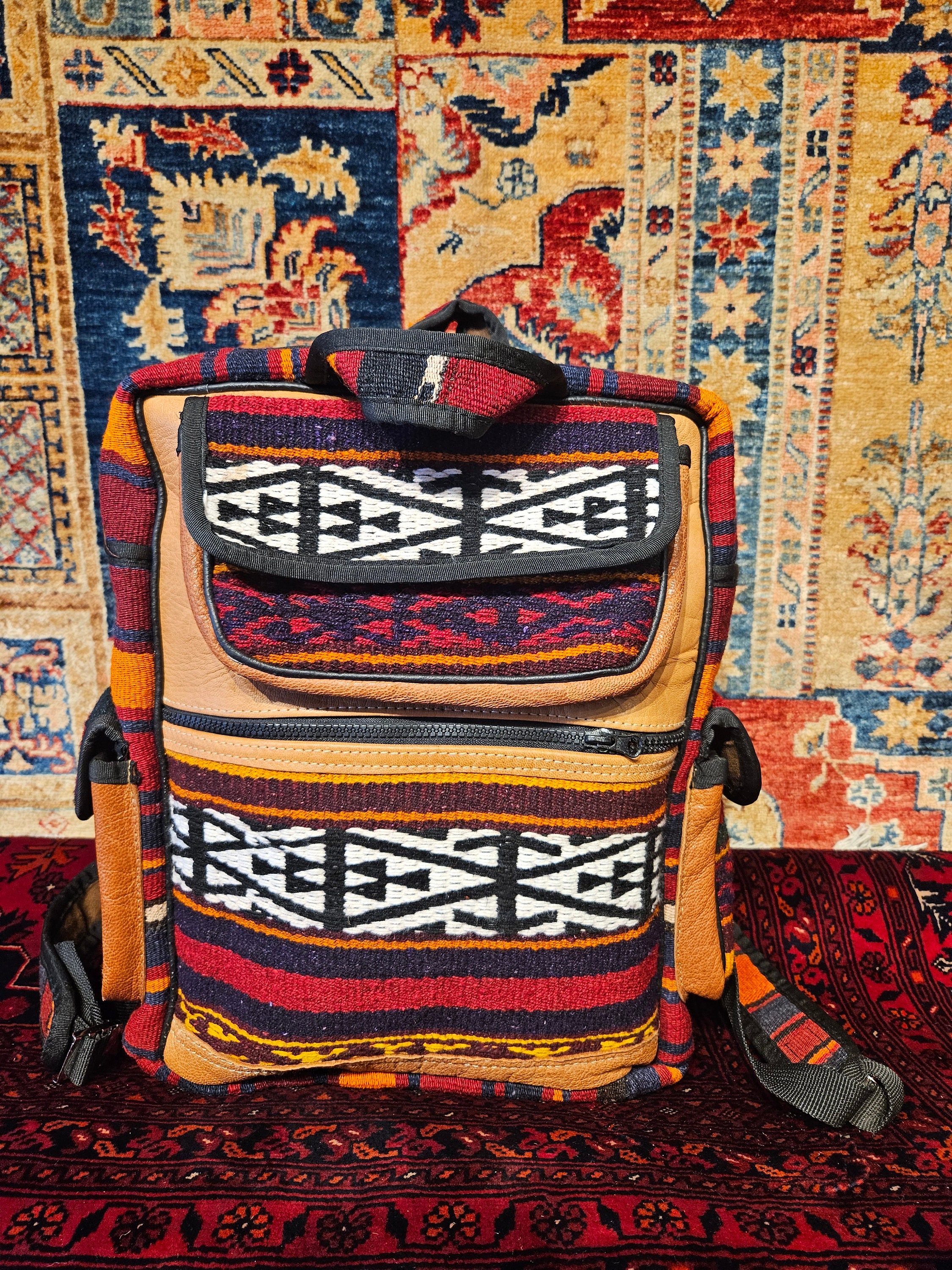 This gorgeous well-made handbag has been handcrafted in Afghanistan using traditional methods, genuine goad leather and traditional Afghan vintage Kilim rug which gives it the vintage and boho look.