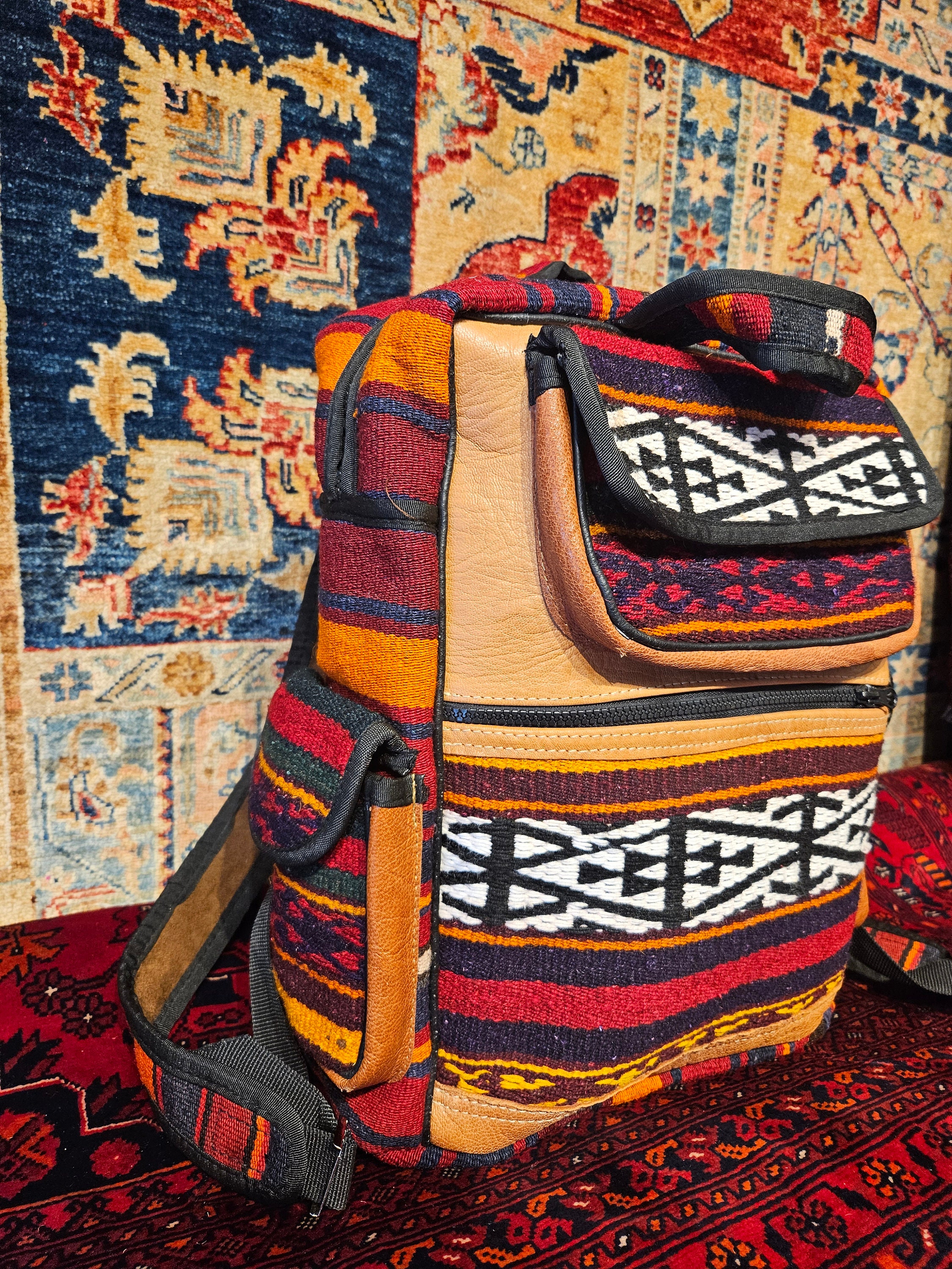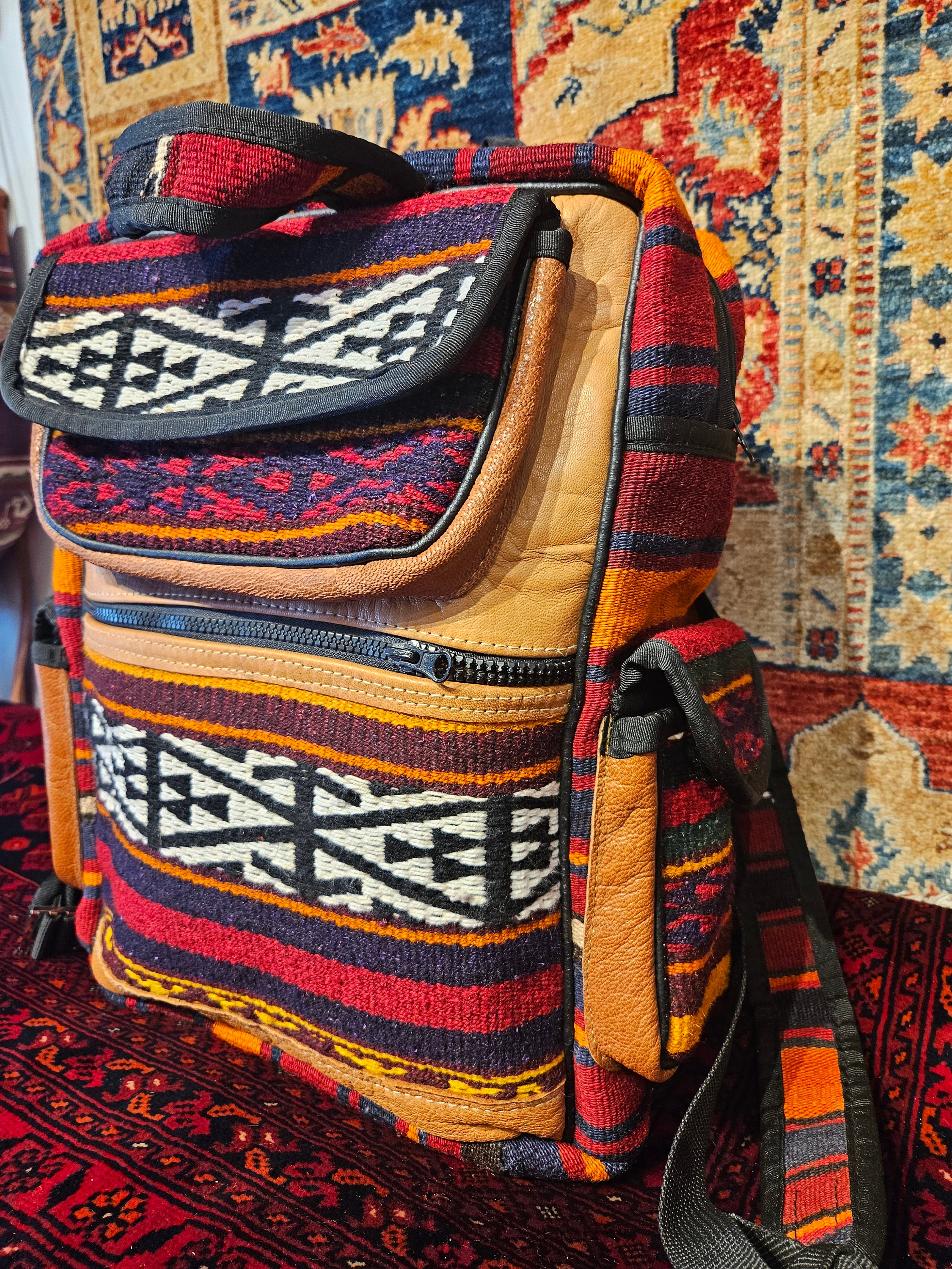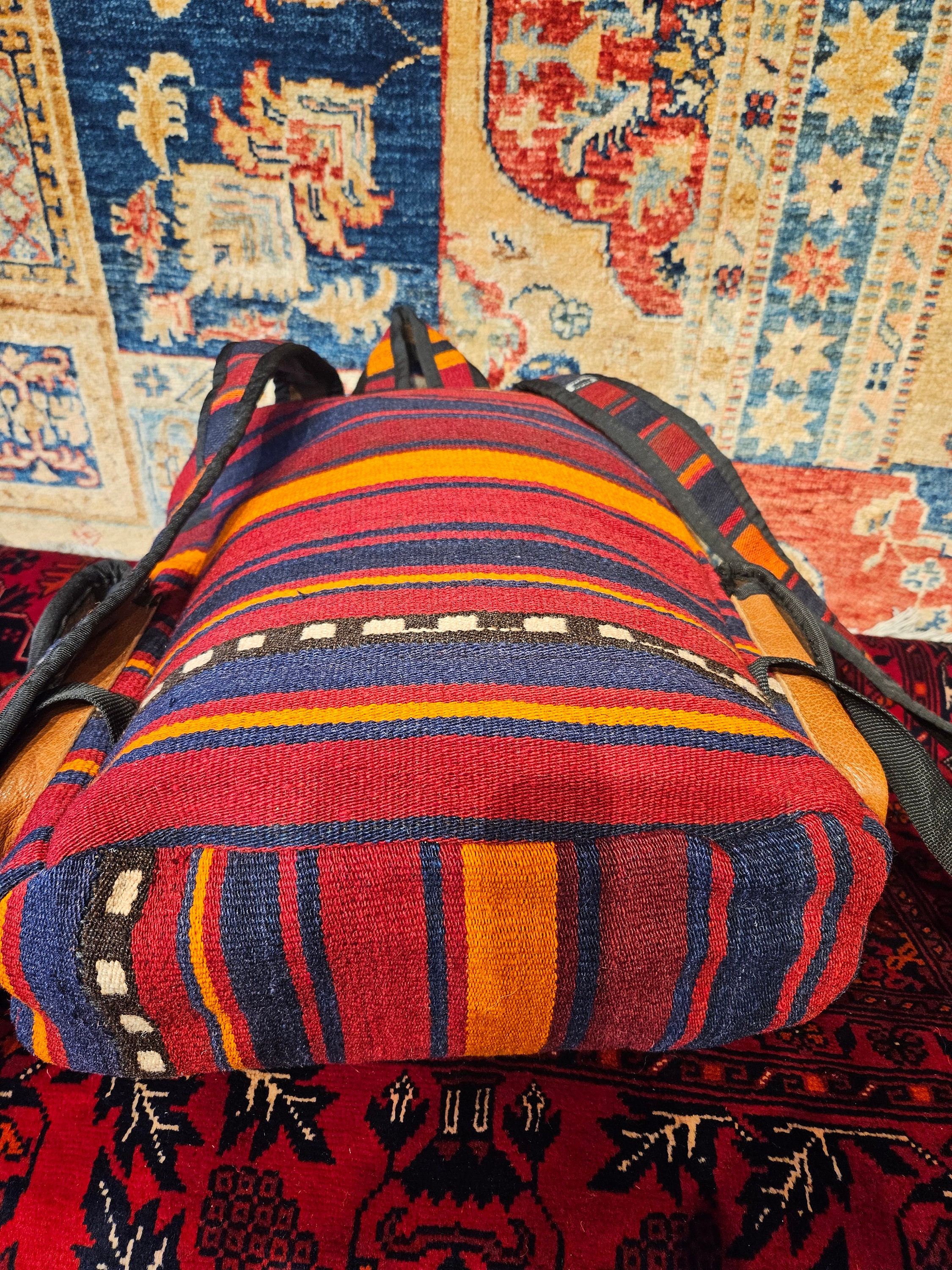 This gorgeous well-made handbag has been handcrafted in Afghanistan using traditional methods, genuine goad leather and traditional Afghan vintage Kilim rug which gives it the vintage and boho look.