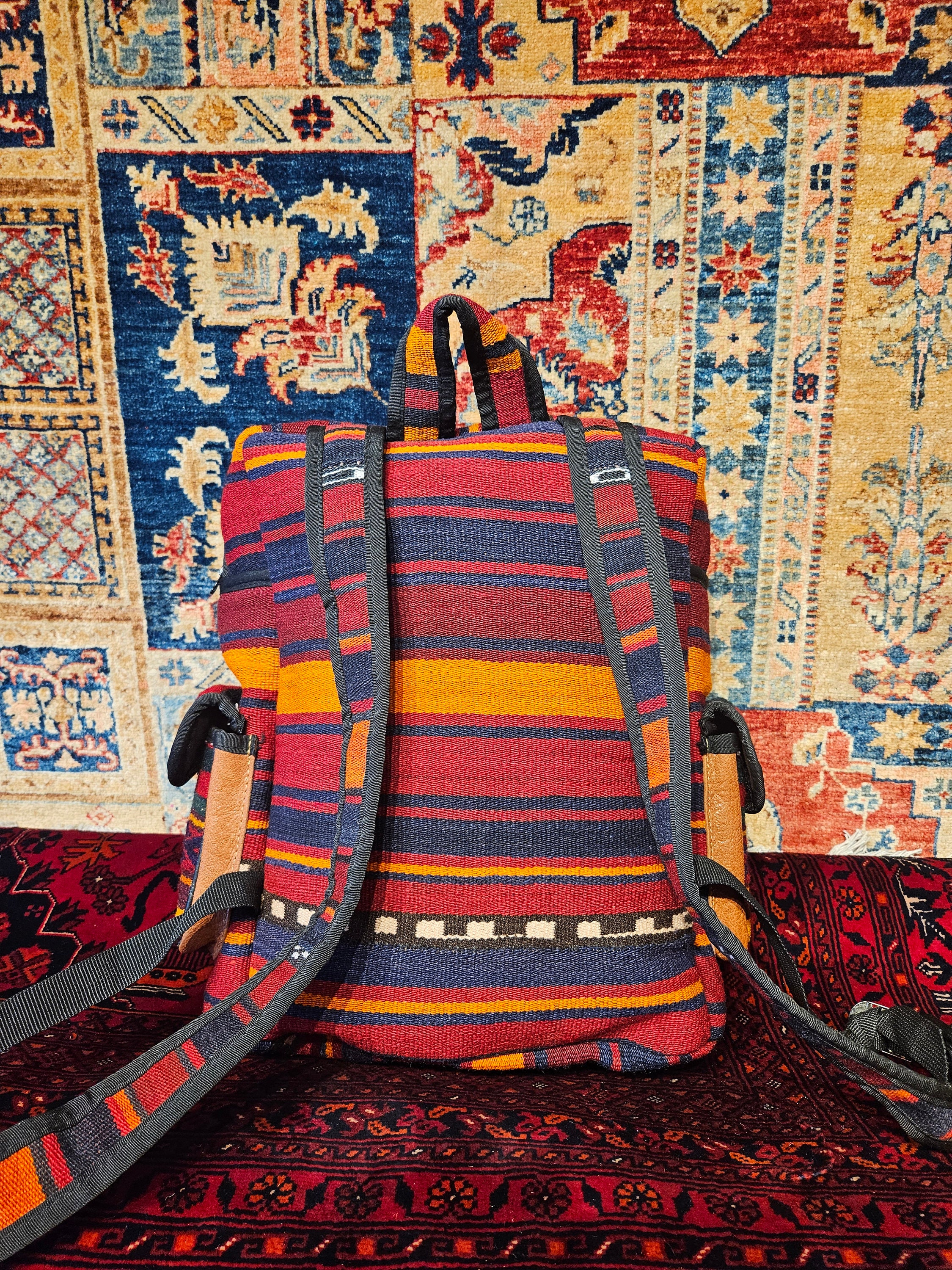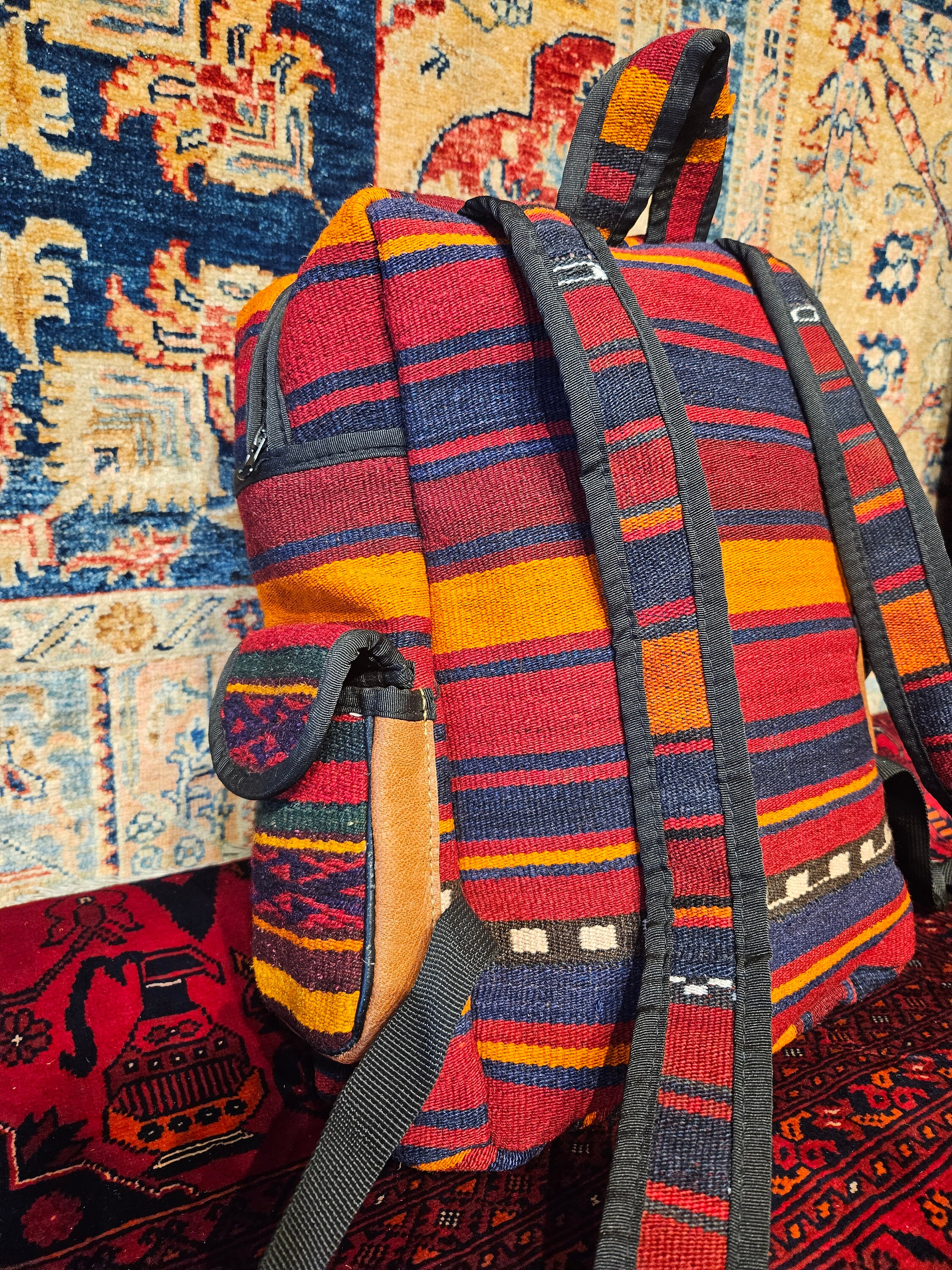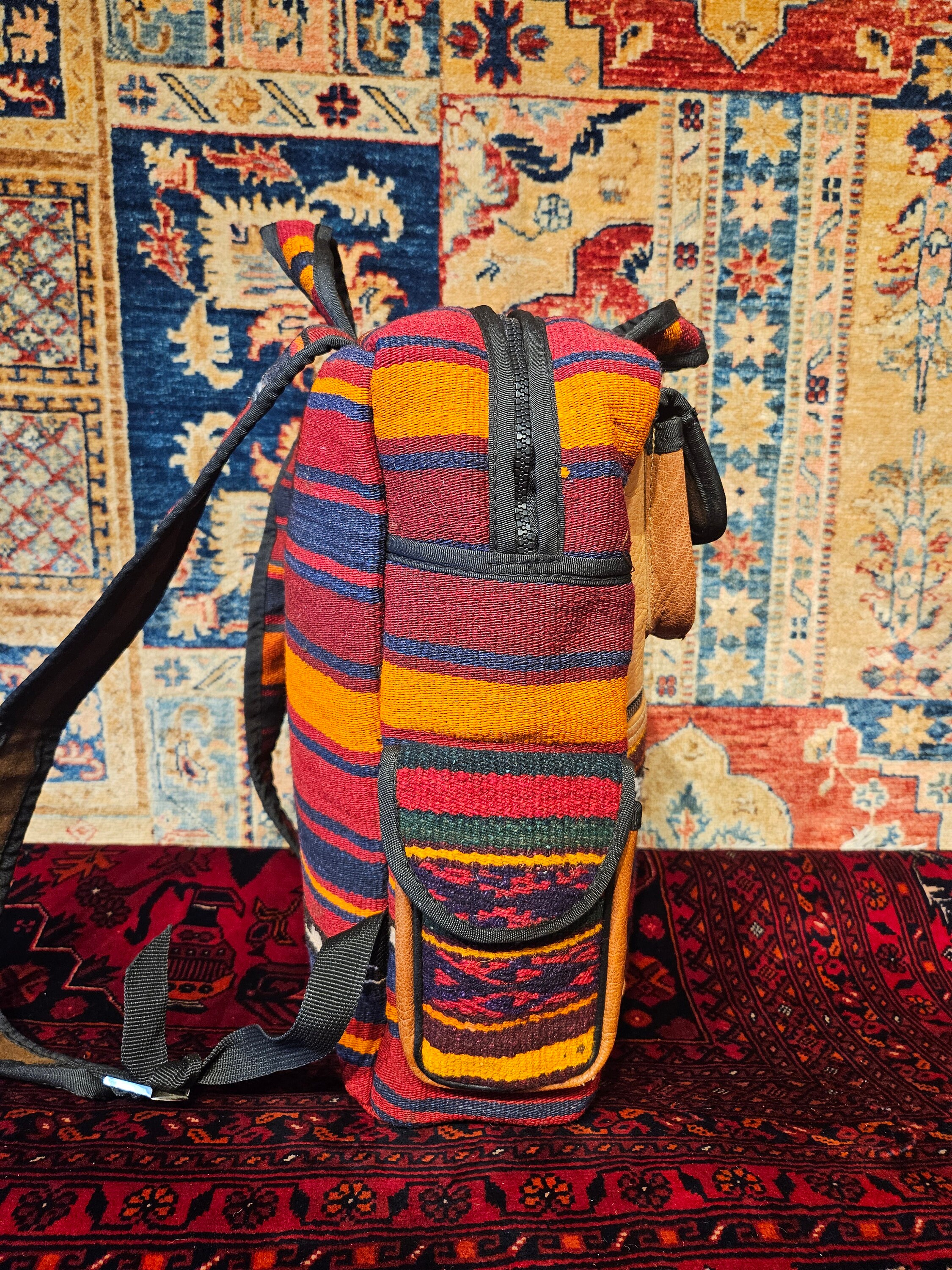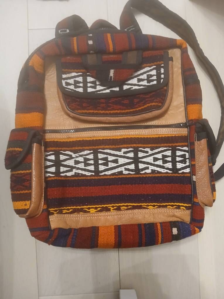 This gorgeous well-made handbag has been handcrafted in Afghanistan using traditional methods, genuine goad leather and traditional Afghan vintage Kilim rug which gives it the vintage and boho look.