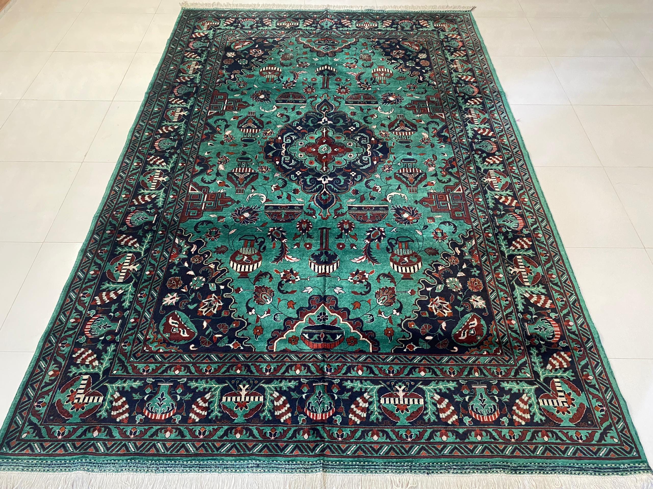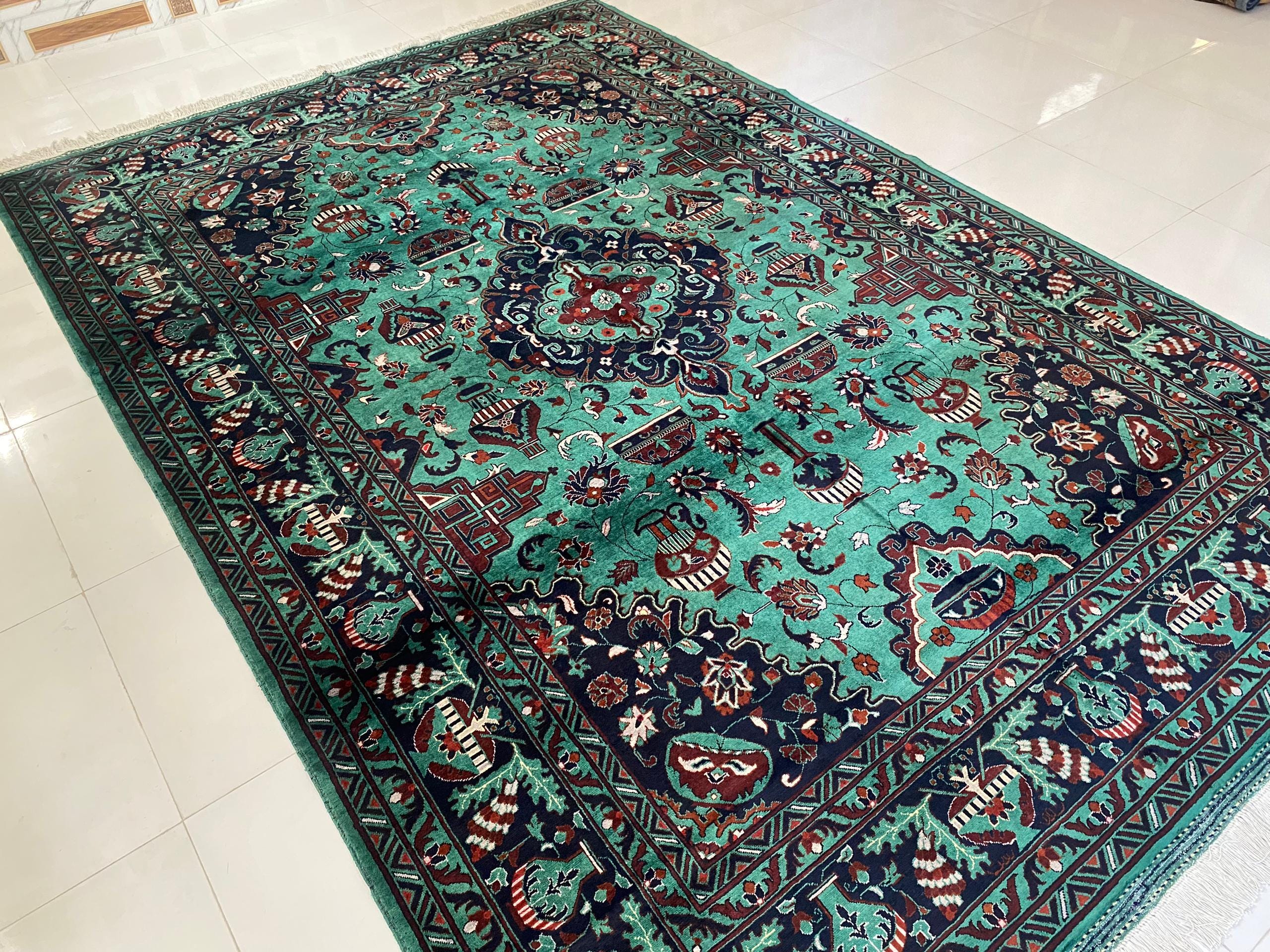 Just provide us with a sample photo of your desired rug, and choose the color, quality, and size. We will Knott it within or less than three months.