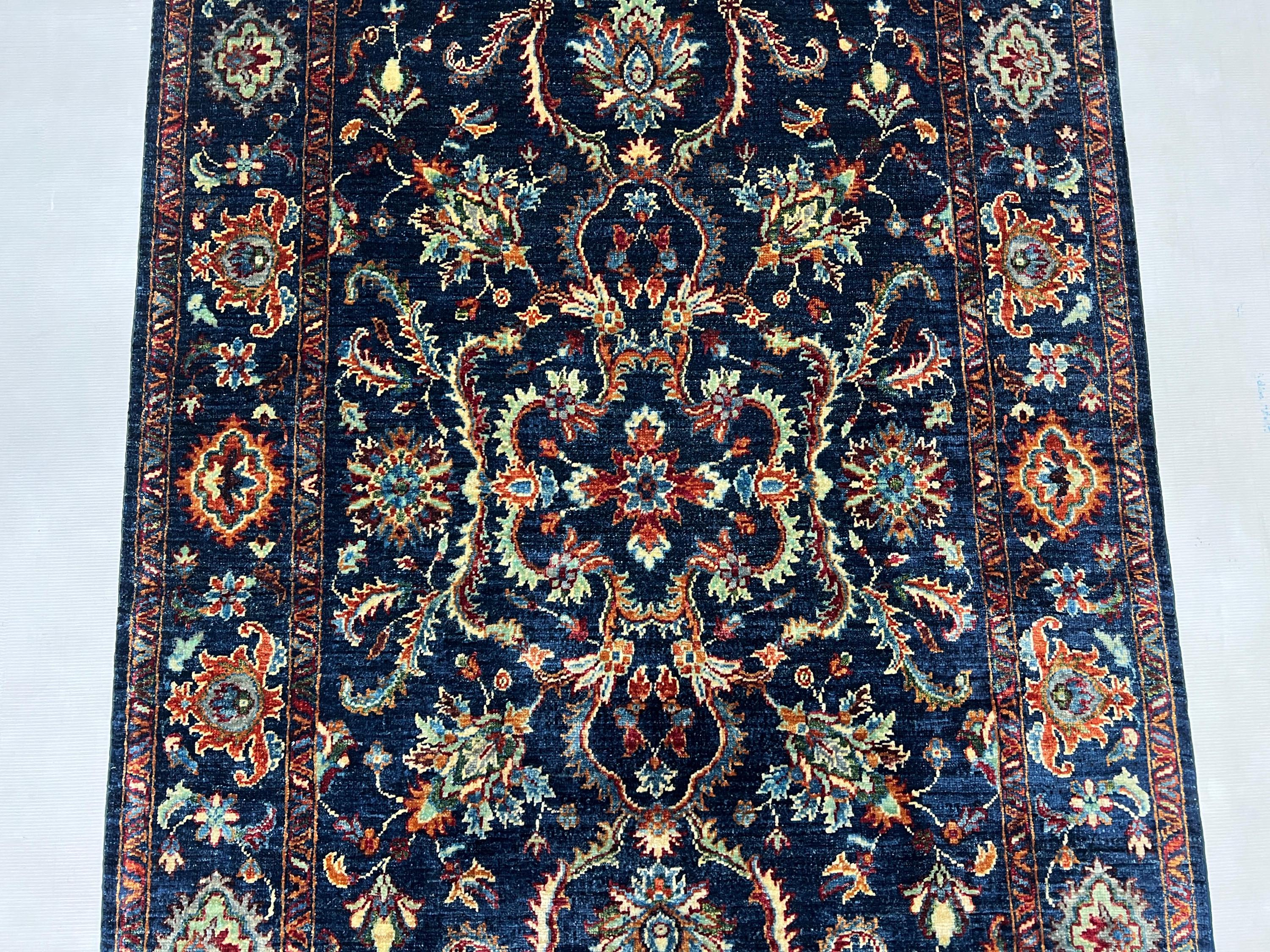 This piece is called a "Mamluk" rug, originated from Afghanistan. Mamluk rug are meant to showcase very classic 1800s designed Turkish and Persian rug. Mamluk rugs in general always try to focus the rug around medallions in the middle, or scattered throughout the rug. Handmade Mamluk-inspired designs are highly sought after today and many feature the signature intersecting compartments surrounding bold medallions.
