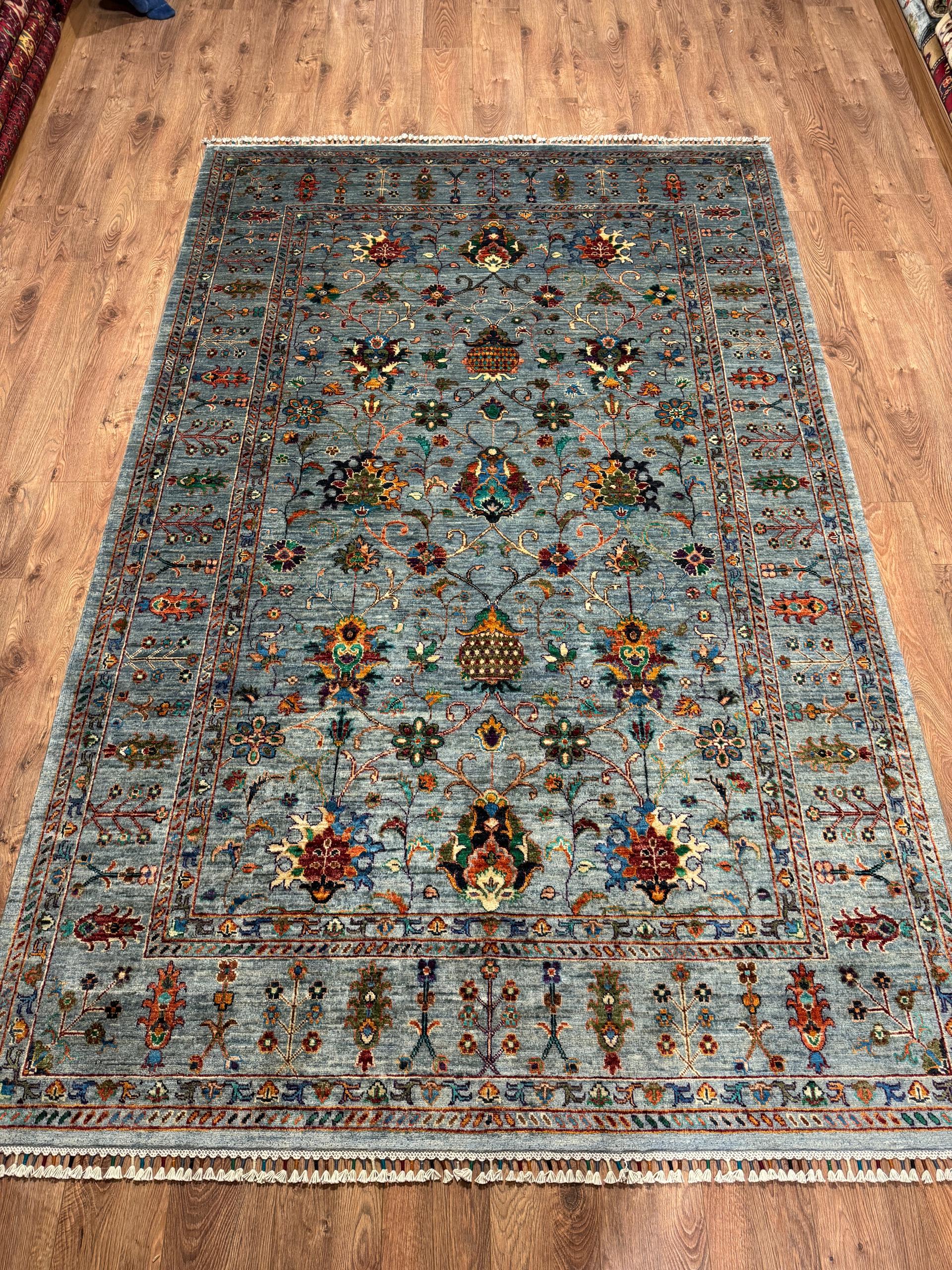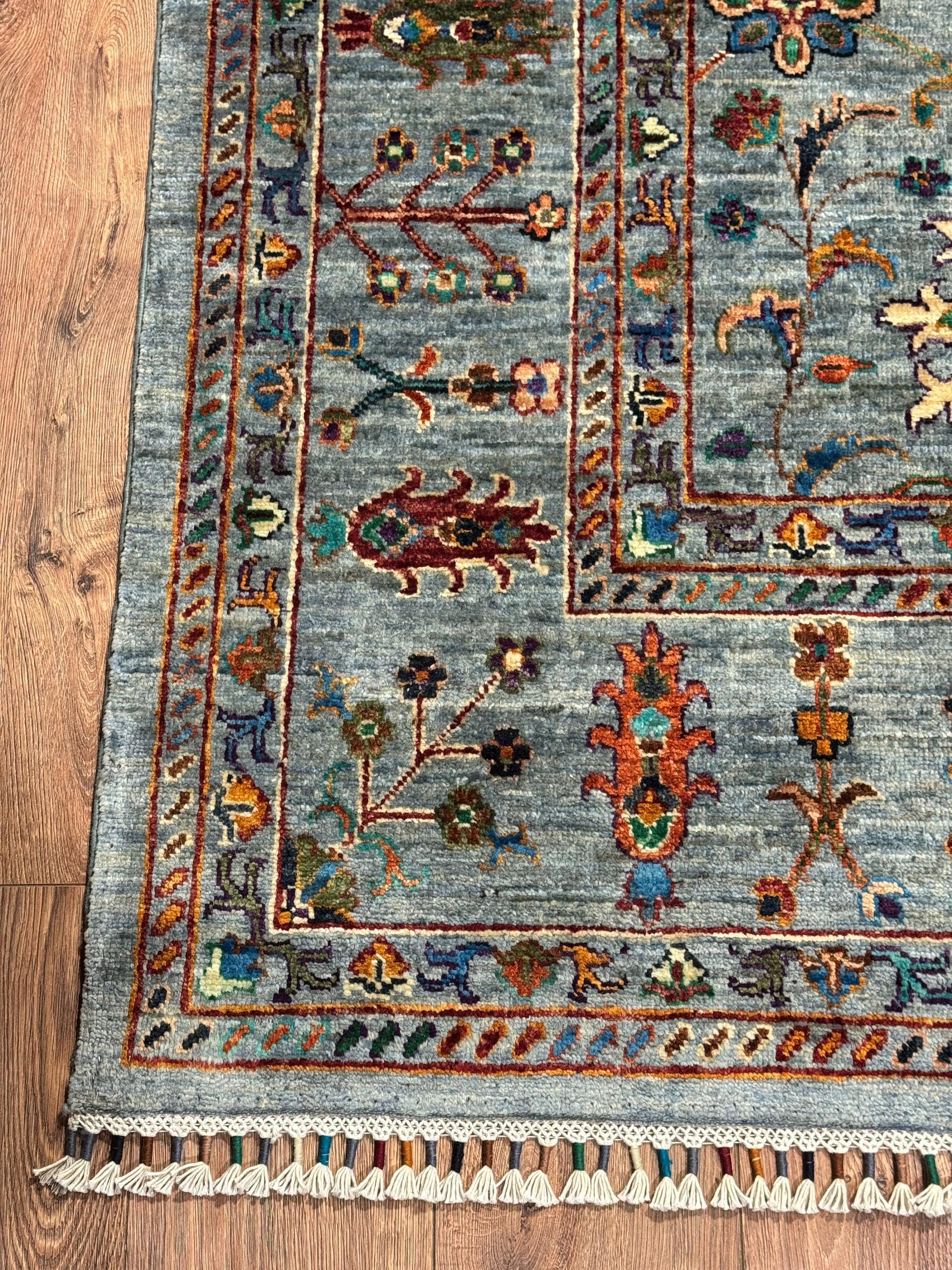 This piece is called a "Mamluk" rug, originated from Afghanistan. Mamluk rug are meant to showcase very classic 1800s designed Turkish and Persian rug. Mamluk rugs in general always try to focus the rug around medallions in the middle, or scattered throughout the rug. Handmade Mamluk-inspired designs are highly sought after today and many feature the signature intersecting compartments surrounding bold medallions.