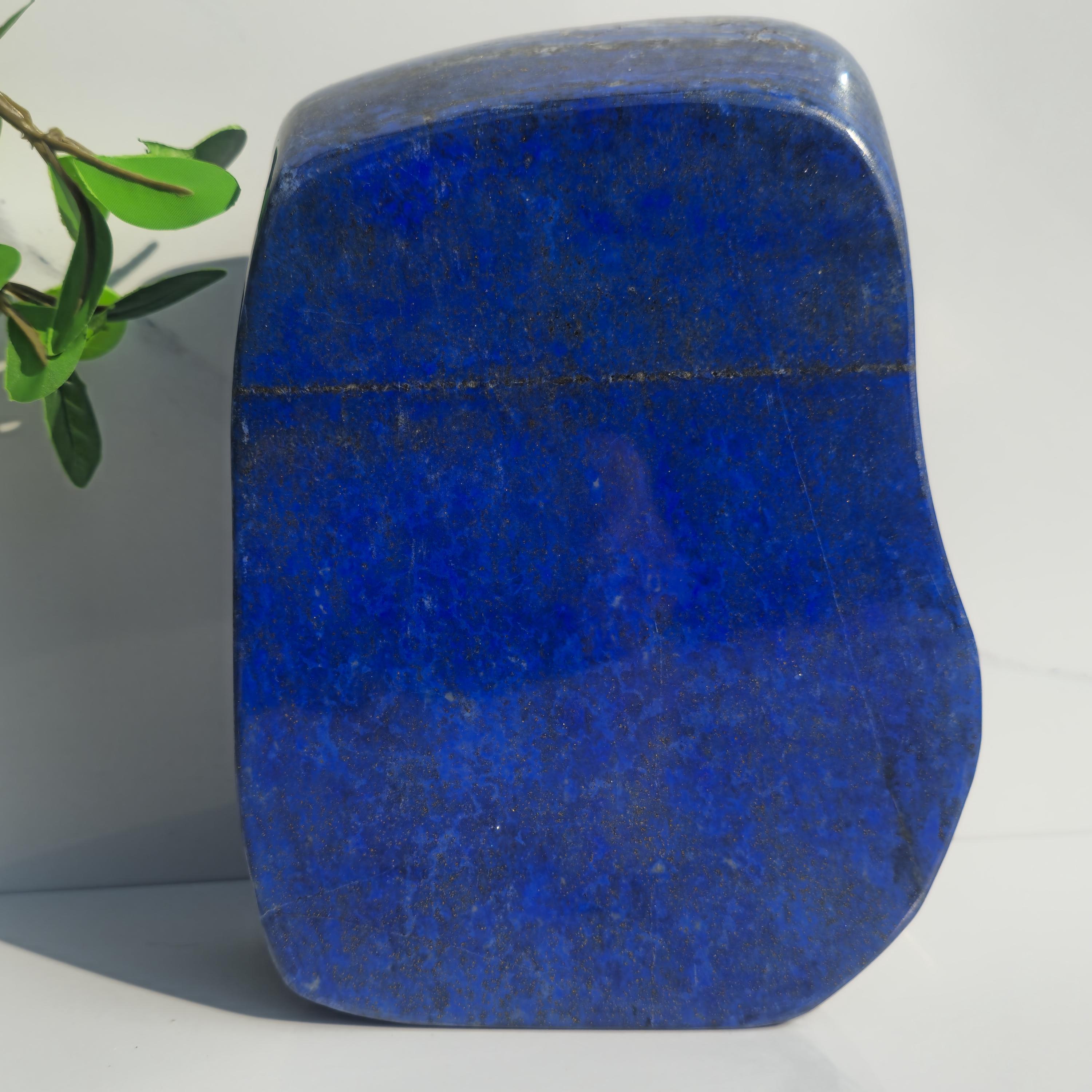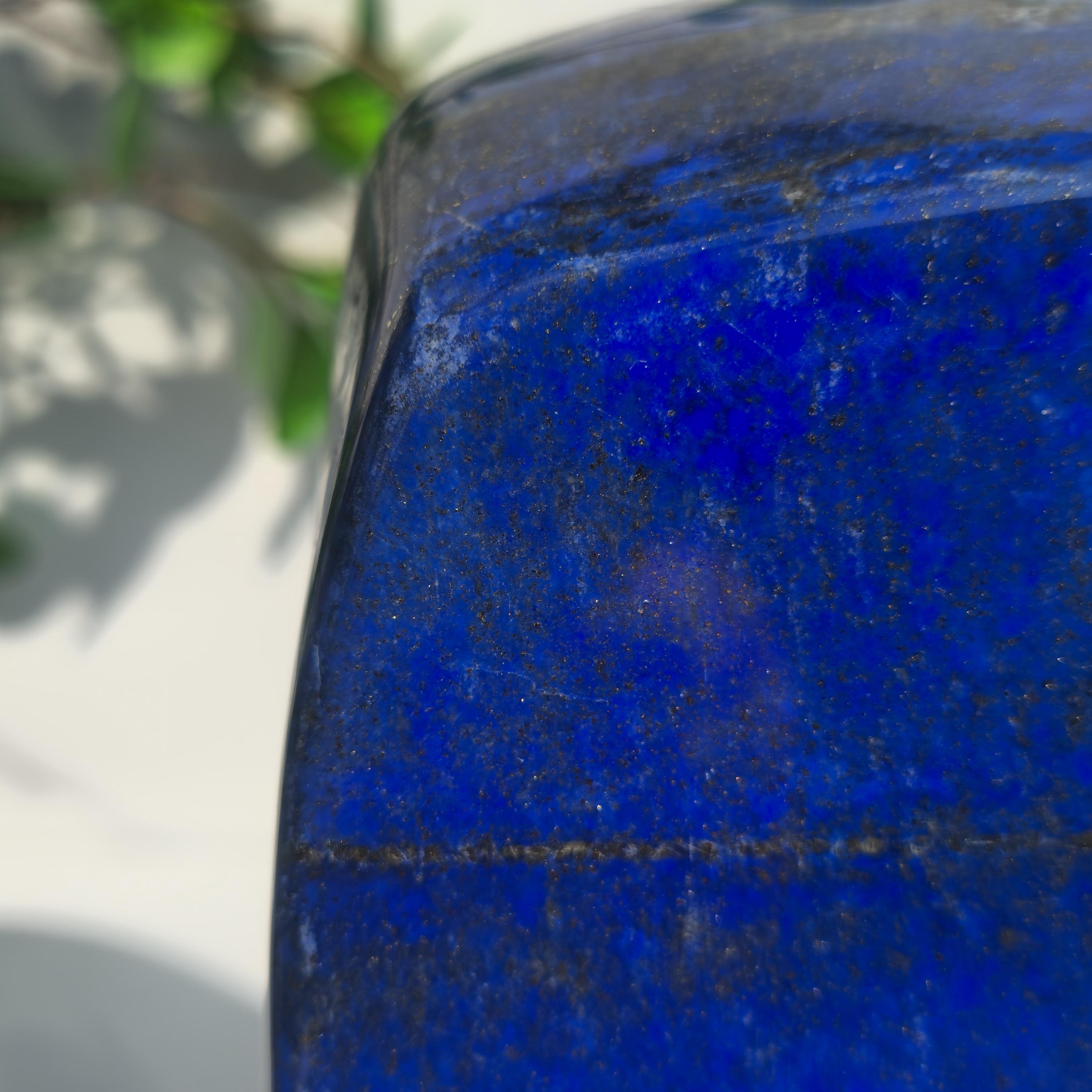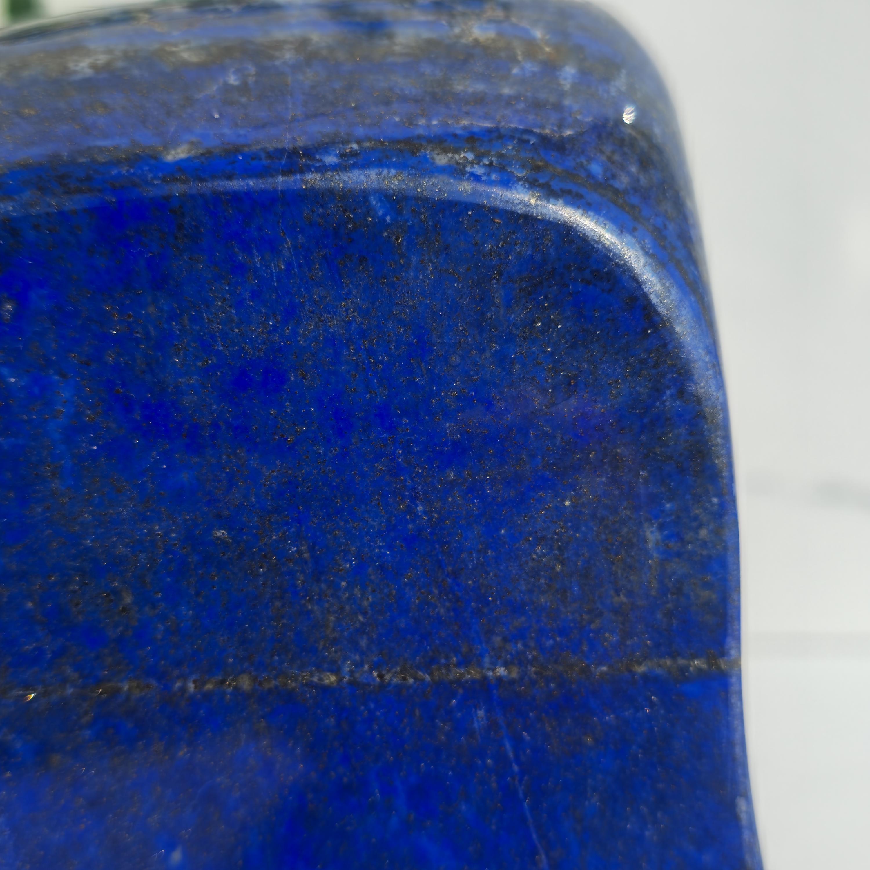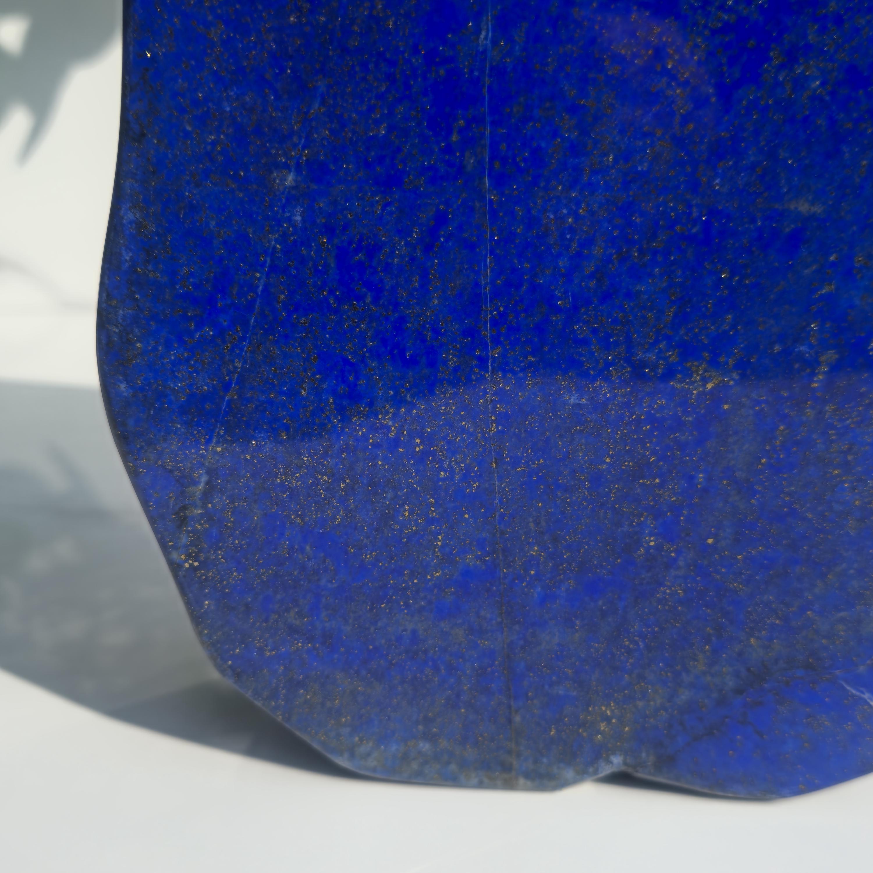 This is a large, fully polished lapis lazuli stone sourced from the Badakhshan region of Afghanistan, an area historically known for producing some of the world's finest lapis.