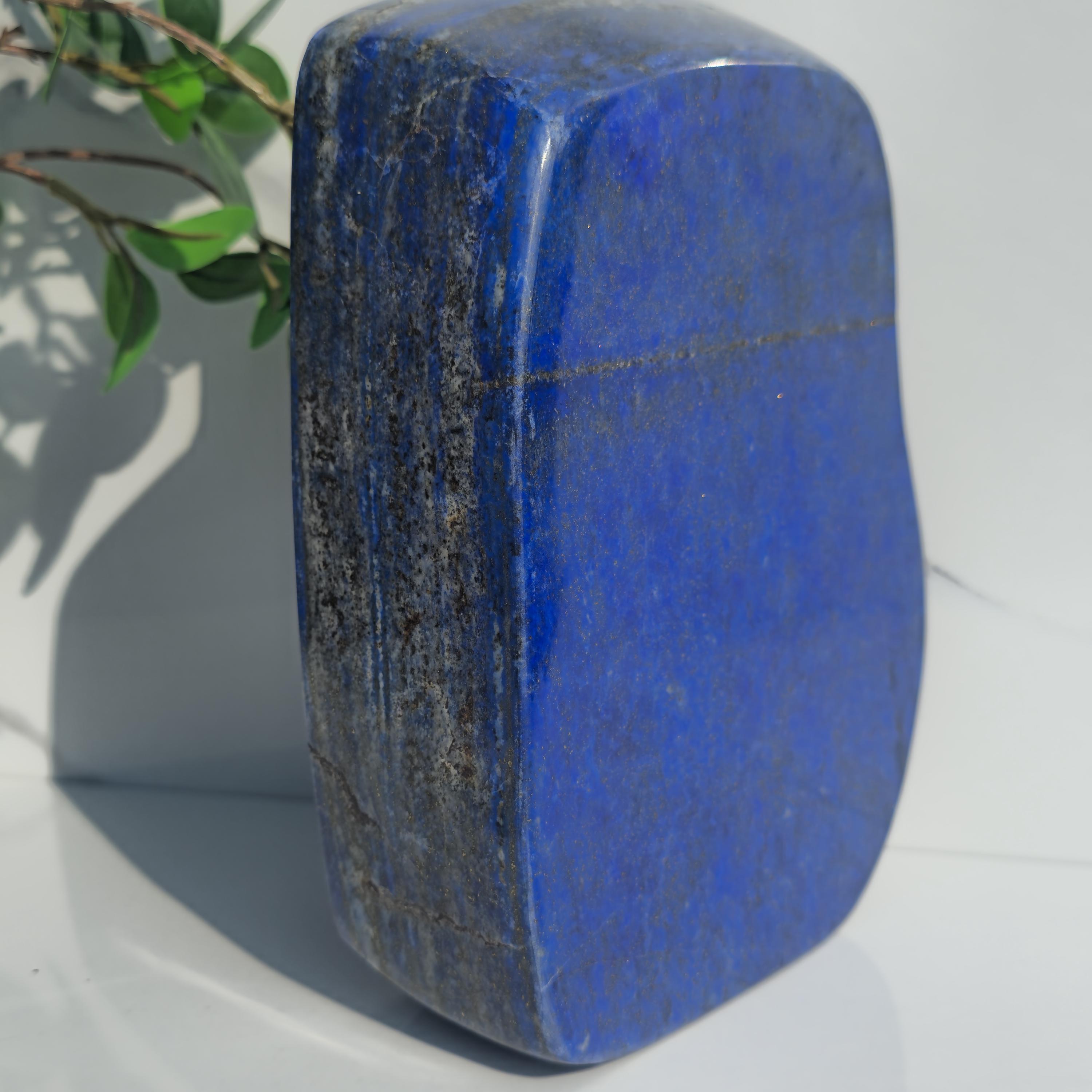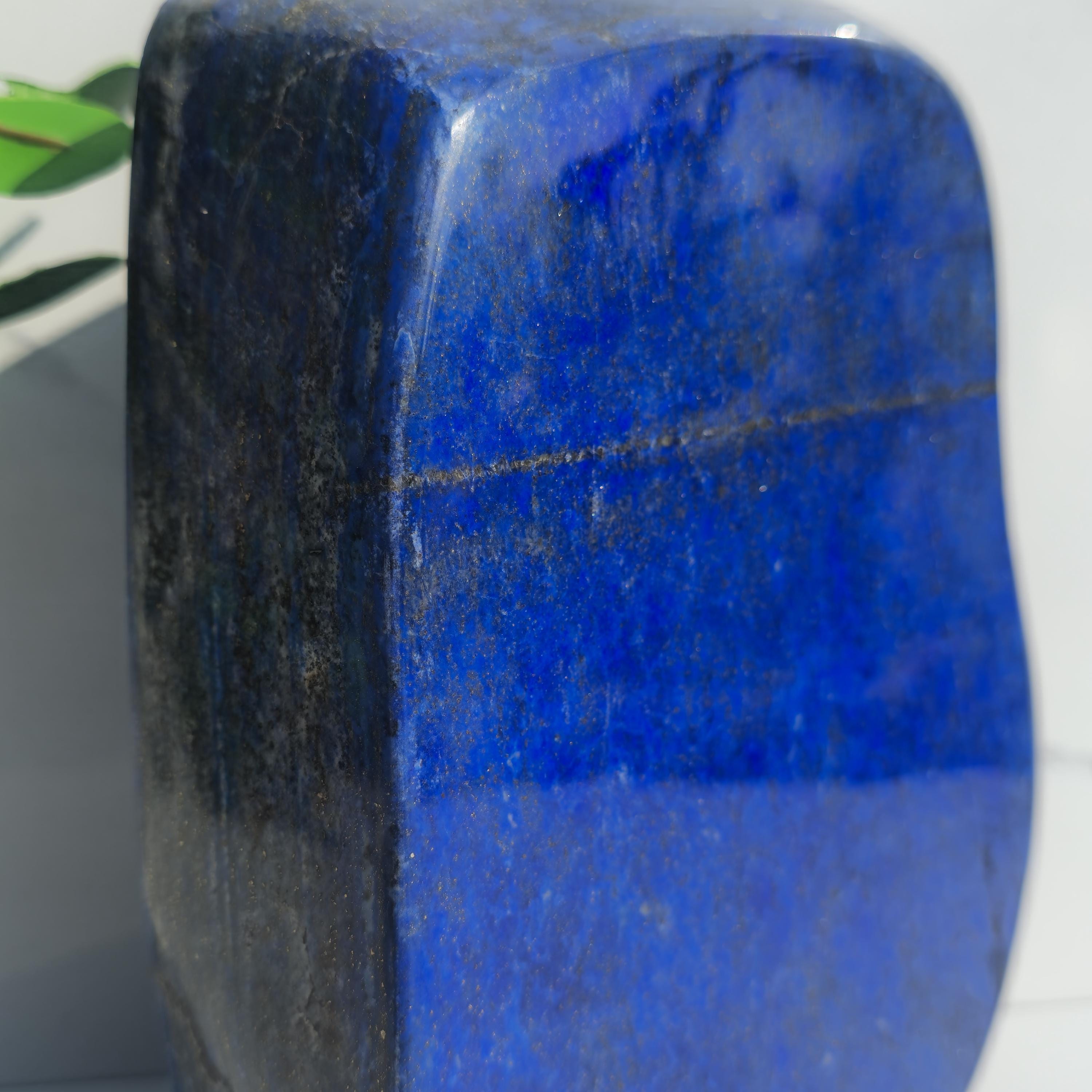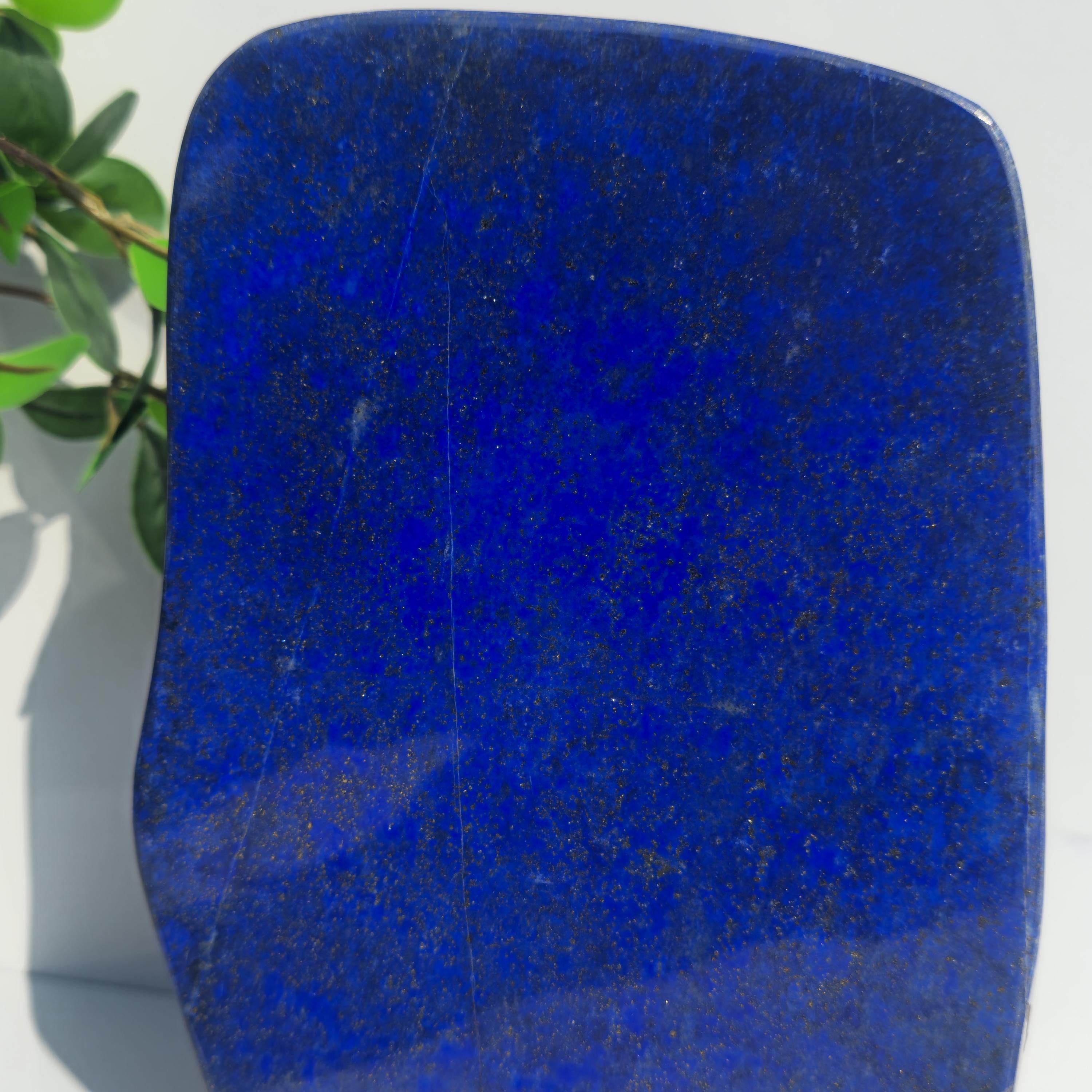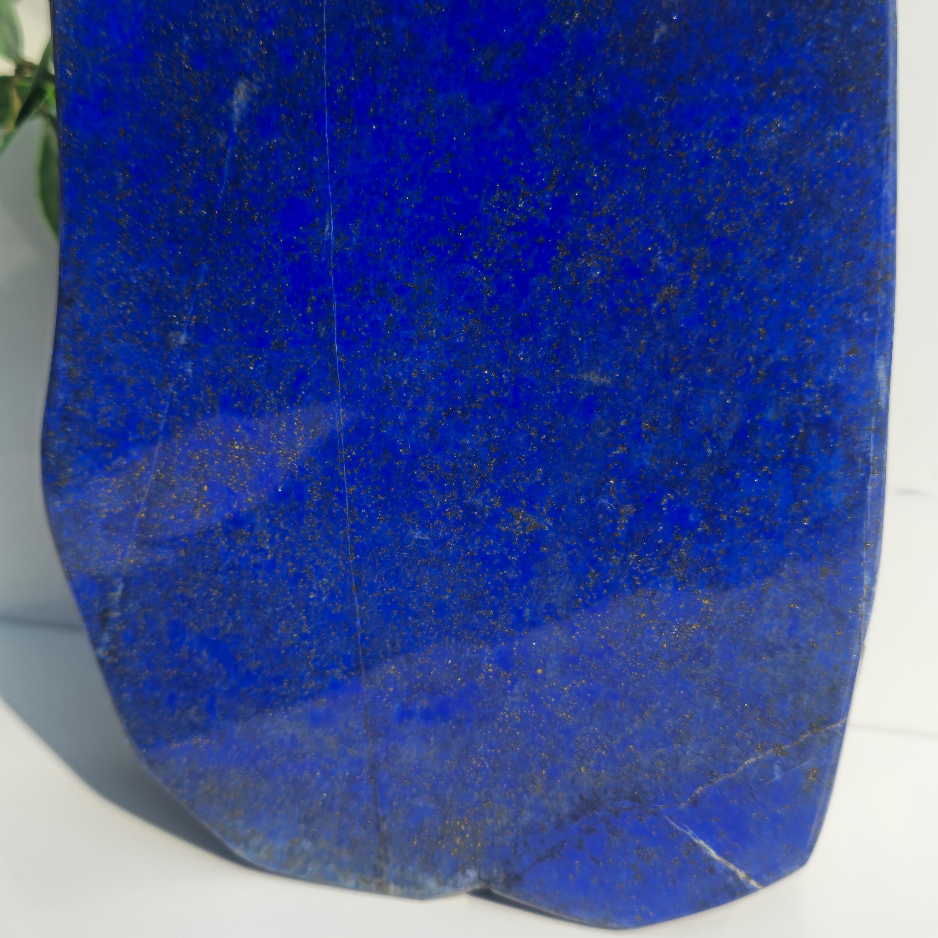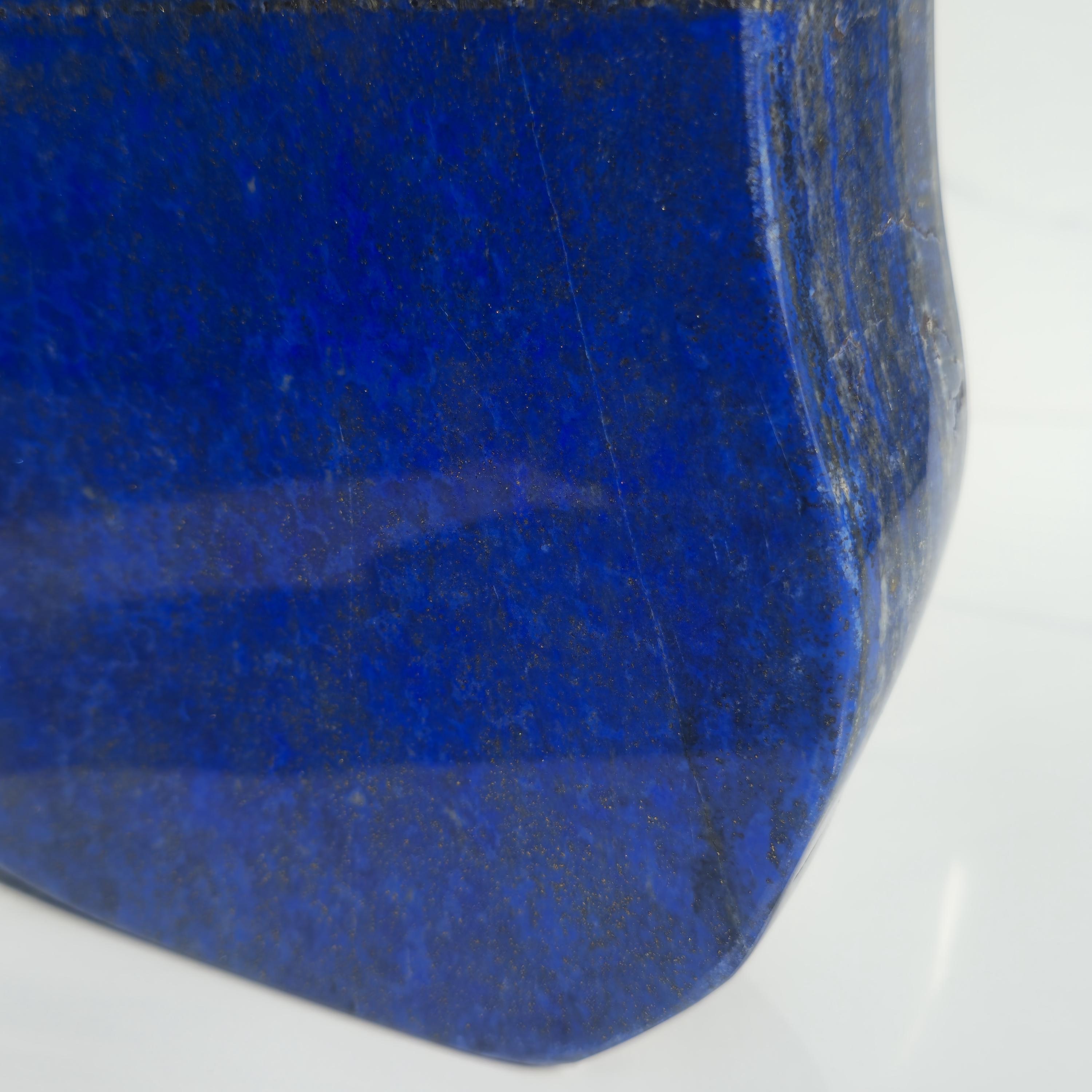 This is a large, fully polished lapis lazuli stone sourced from the Badakhshan region of Afghanistan, an area historically known for producing some of the world's finest lapis.