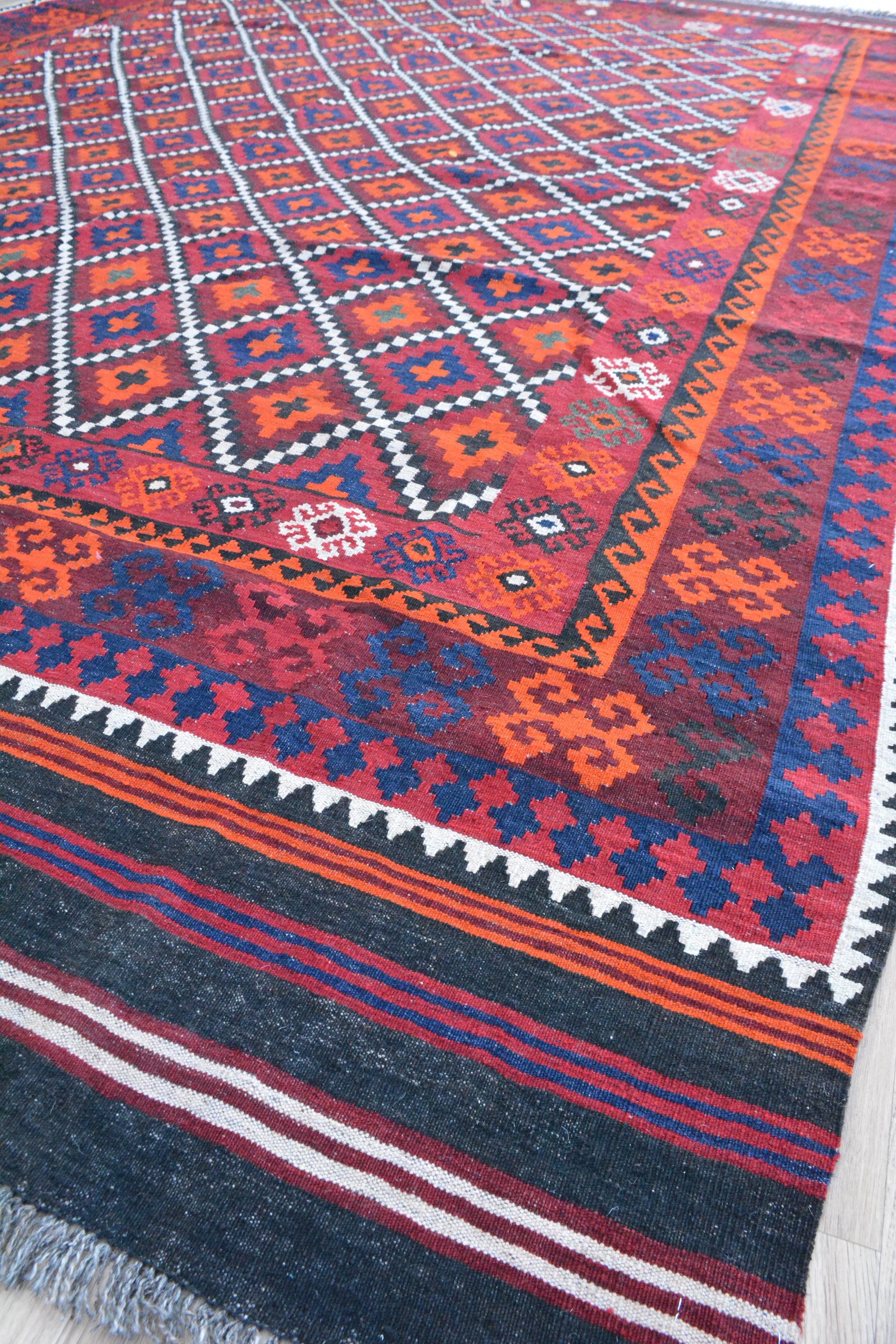 This is a brand new well-made Maimana Kilim made with High-quality wool from Ghazni north of Afghanistan on a wool foundation which is soft and durable. This kilim rug is colored vegetable dyes of the area.